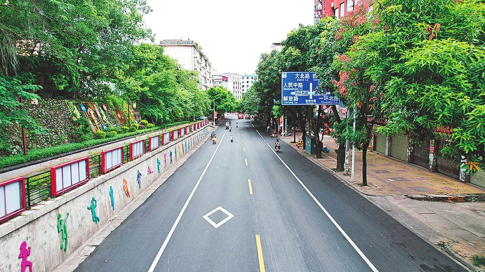 ③改造后的教育中路宽阔平整,焕然一新。(玉林市融媒体中心记者 李楷诚 摄)