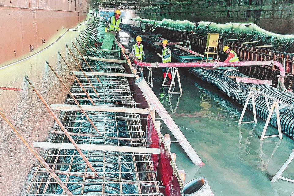 ④城区五里沟片区排水防涝提升改造工程进行中,工人正在铺设管网。(玉林市融媒体中心记者 林声远 摄)