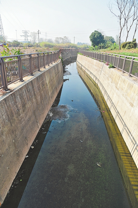 ⑥广新路黑臭水体整治后,水渠环境干净整洁。(玉林市融媒体中心记者 林声远 摄)