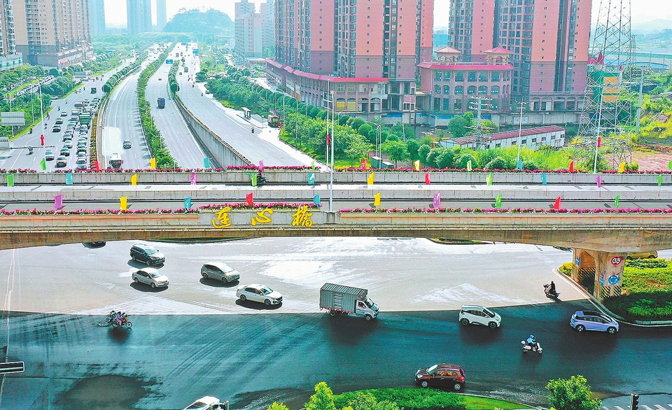 ①民主南路立交桥被市民亲切称为“连心桥”。(玉林市融媒体中心记者 蒋金泰 摄)