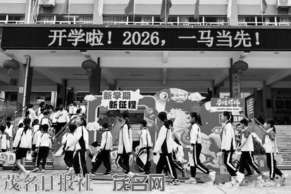 春回大地,万象更新。3月2日,茂名市中小学正式拉开2026年春季新学期的帷幕,全市各校精心策划、用心布置,用满满的仪式感和丰富的主题活动迎接学子归来。从校门口的温馨问候到教室里的朗朗书声,从庄严的升旗仪式到精彩的科创展演,校园处处洋溢着蓬勃朝气。茂名日报社多路记者奔赴全市多中小学校,直击开学第一天盛况,记录下少年学子“逐光向未来、科创筑梦强中华”的动人瞬间。