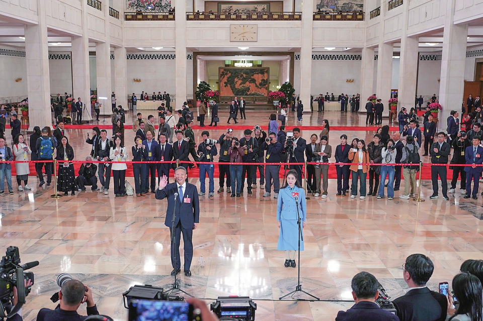 第十四届全国人民代表大会第四次会议第二场“代表通道”集中采访活动在北京人民大会堂举行。新华社记者 傅天 摄