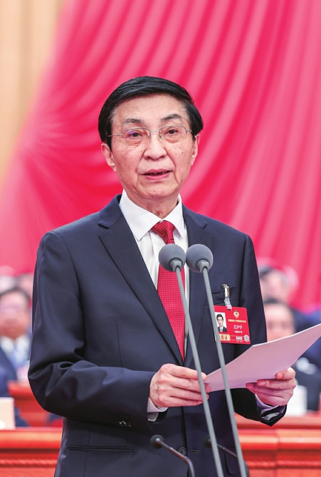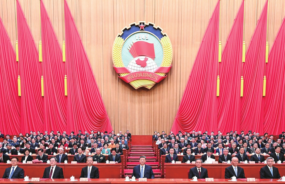 3月11日上午,中国人民政治协商会议第十四届全国委员会第四次会议在北京人民大会堂闭幕。全国政协主席王沪宁主持闭幕会并讲话。 新华社记者 黄敬文 摄