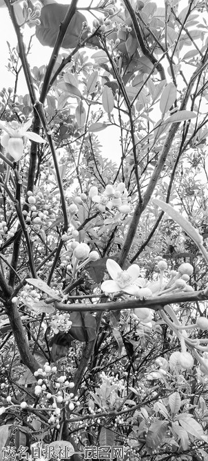 阳春三月暖,得意化橘开。在那片绿油油的岗野,清晨的化州,和风滑漫过橘林,那久违的枝头齐刷刷地探出了头儿,露出那招牌式的甜笑,勤快的蜜蜂闻香而来,那轻盈的脚步印在雪白的花瓣上,用它那迷人的尖嘴深情地吻着蕊黄的花心,蜜蜂迷醉了,美丽的橘红花也陷入醇香的世界……