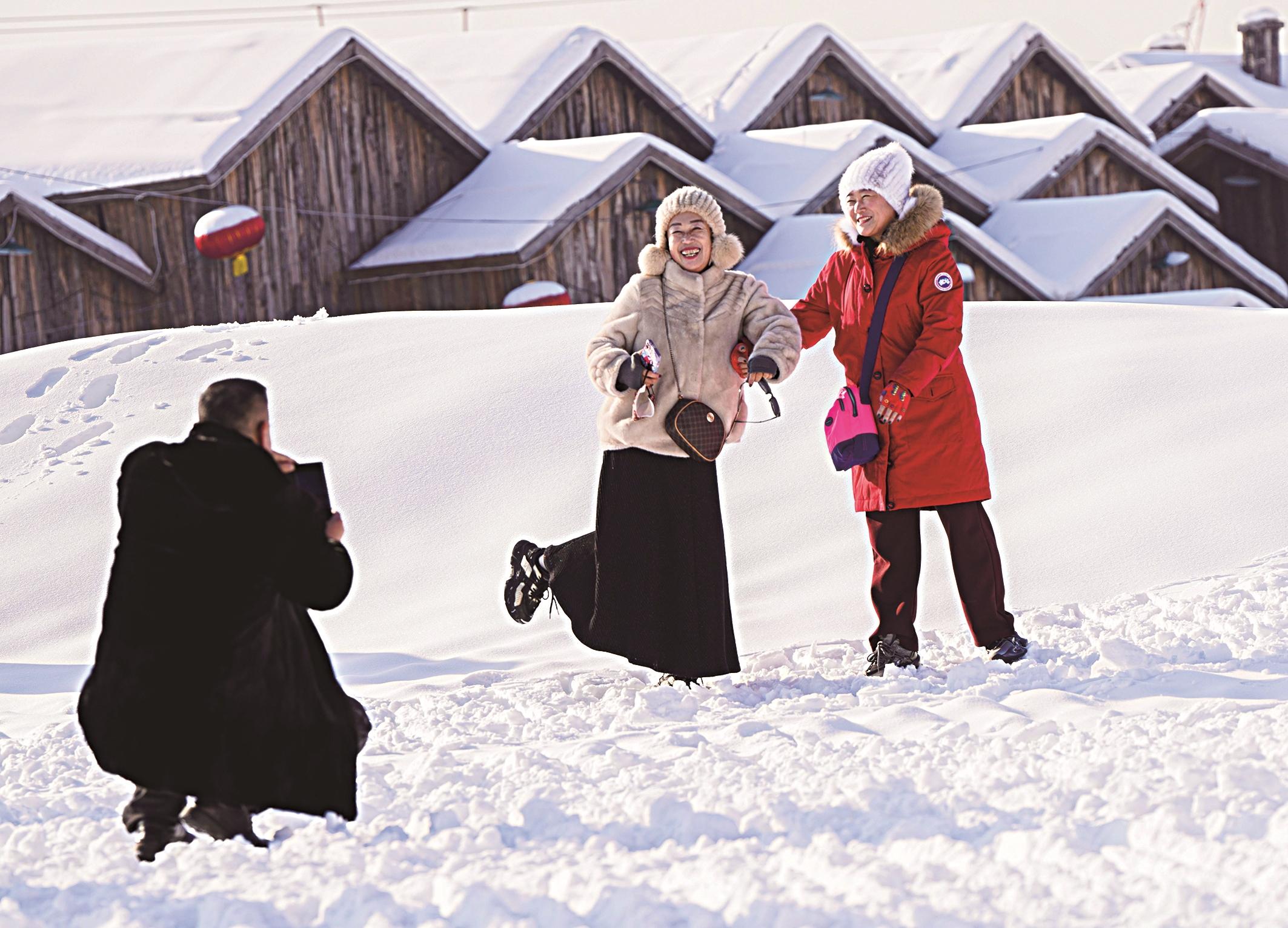 1月4日,游客在河北省遵化市一雪乡景区打卡点拍照。
