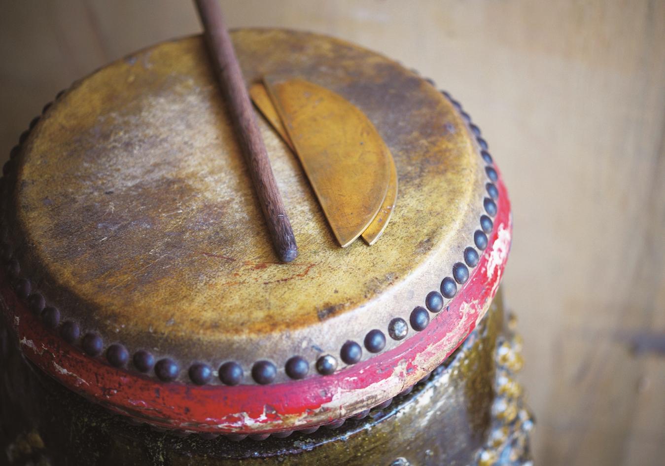 “嘣嘣嘣、嘣嘣嘣……”说书艺人表演前的定场诗、开场白之前,总是先打鼓,以招来观众。鼓声或高或低、或急或缓,音色清晰明快,并伴有沙沙的声音,这别有特色的鼓声,犹如浓郁的乡音般亲切,让人痴迷、沉醉和神往。