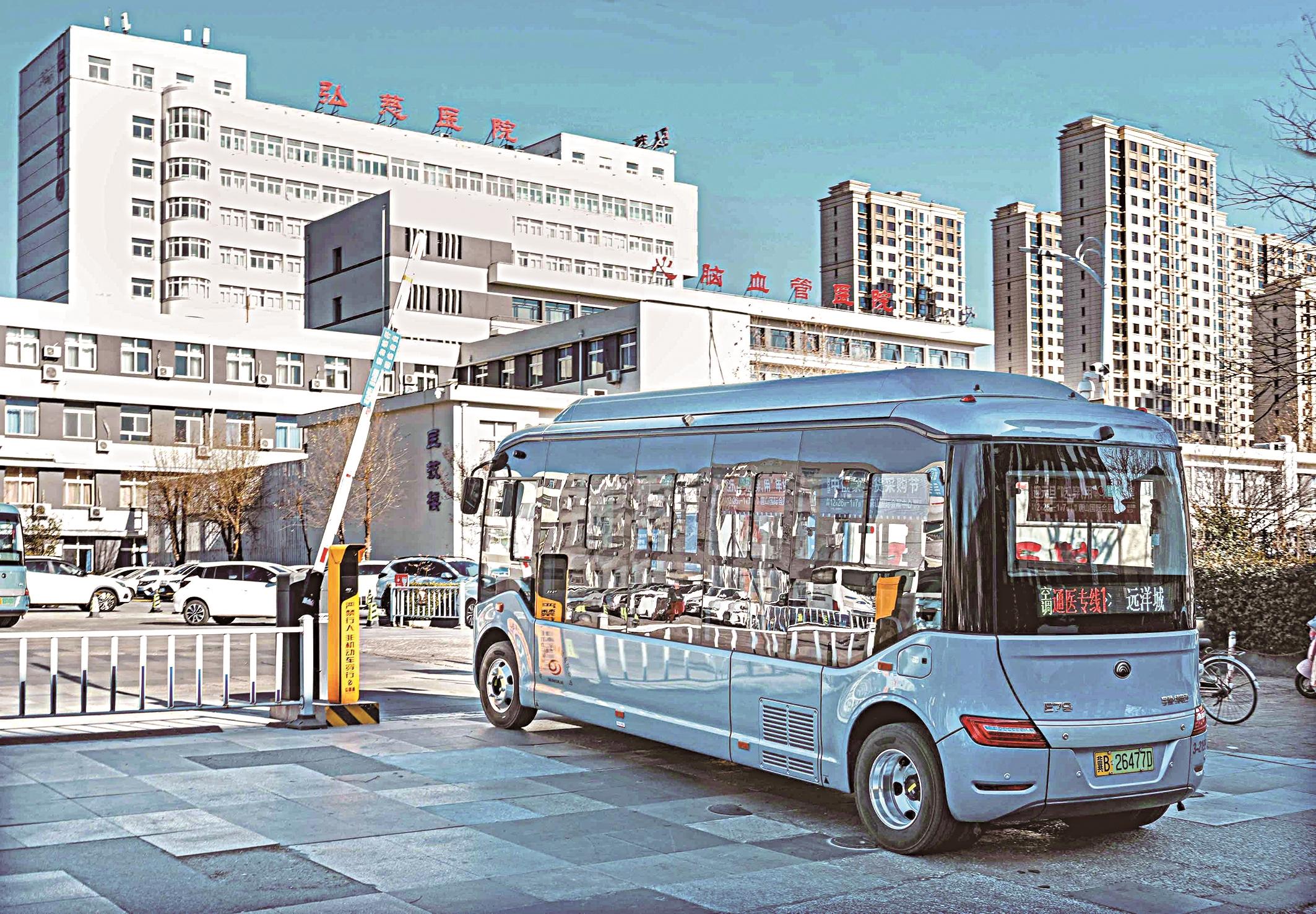 图为投入运营的通医公交车。 本报记者 徐慧 王欢 摄