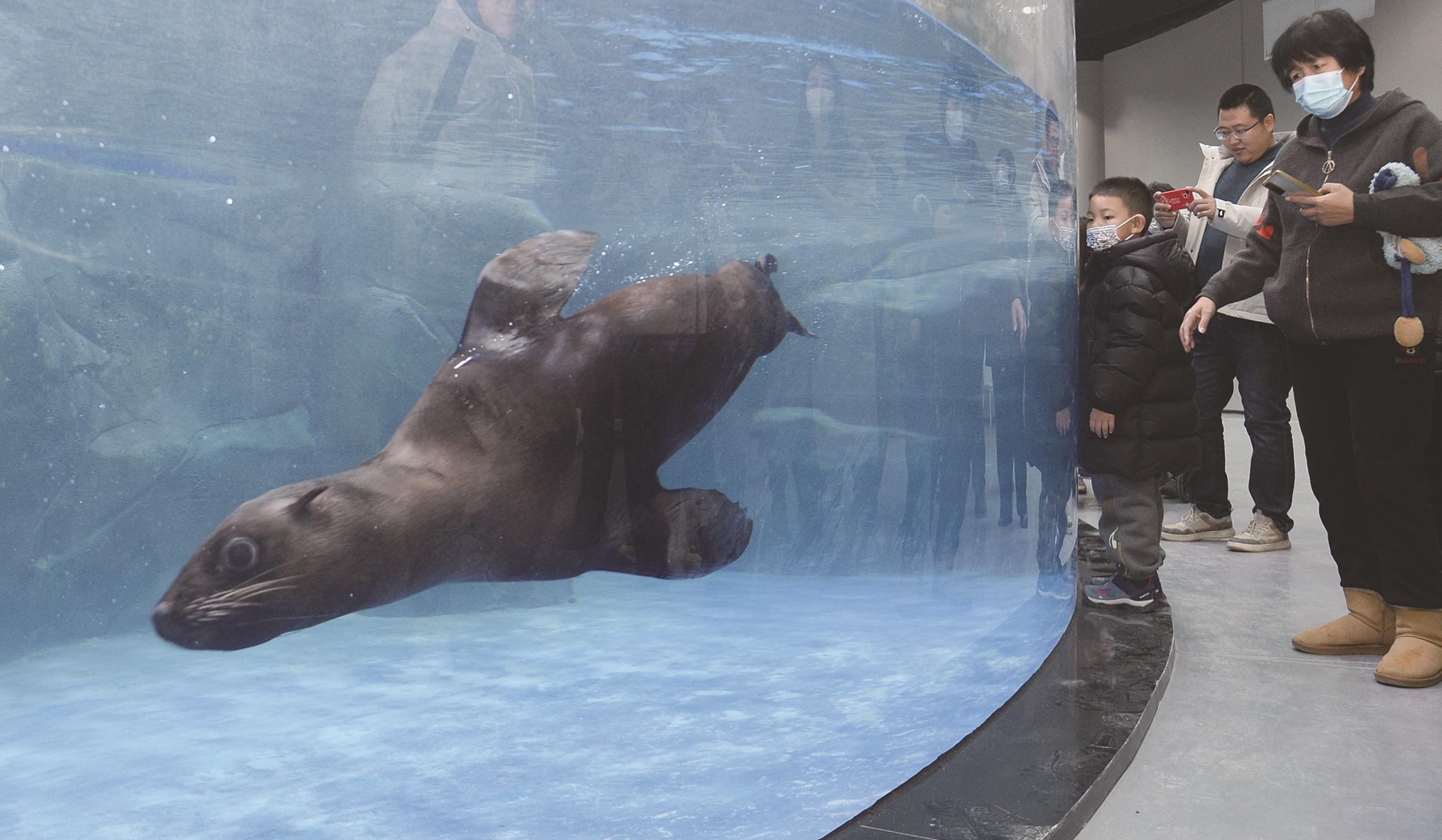 馆内海狮表演吸引了众多游客观看。 本报记者 杜雯拓 通讯员 何川 刘美娜 摄