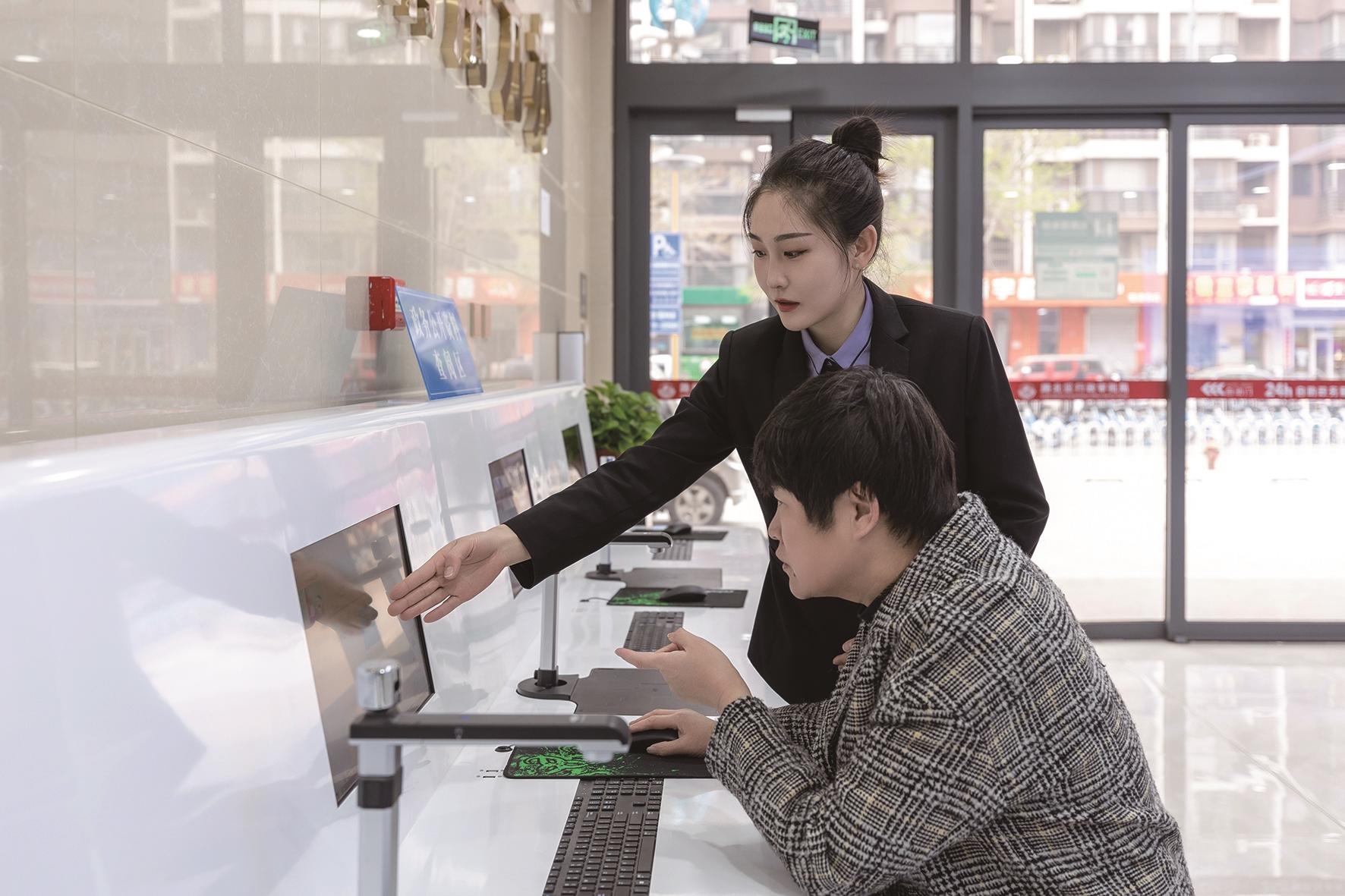 图为路北区数据和行政审批局24小时自助服务厅内,工作人员帮助群众办理业务。 陈幸泉 摄