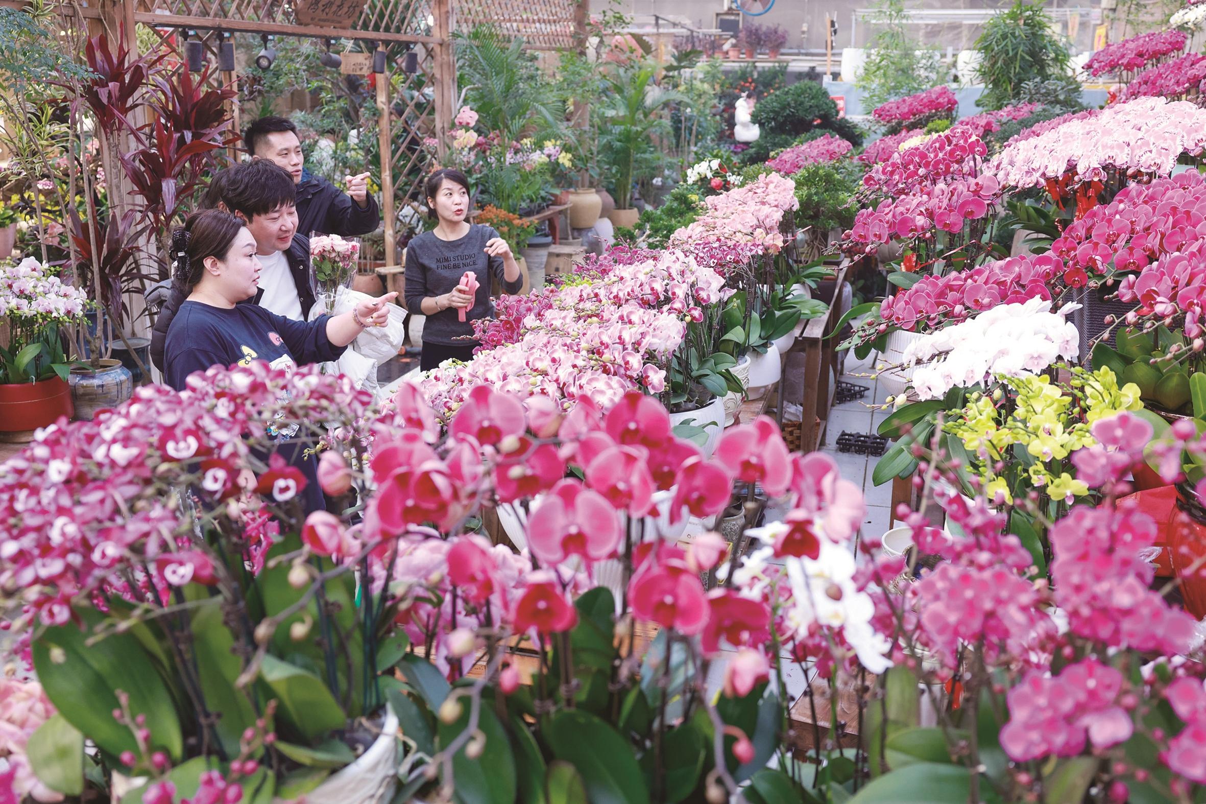 1月22日,人们在河北省唐山市丰南区在一花卉市场选购鲜花。
