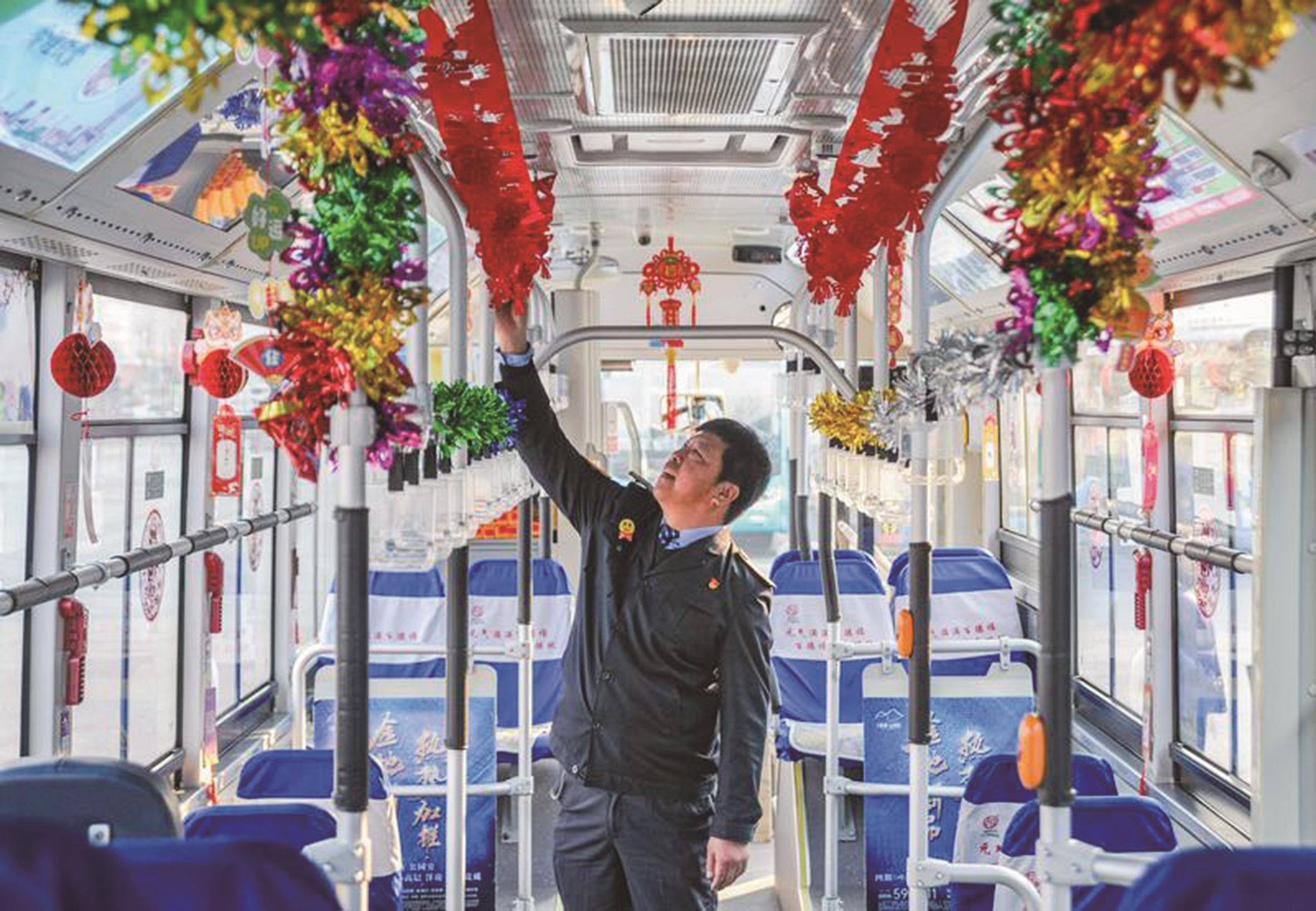 本报讯 (记者刘庄子 通讯员徐晗)随着新春的脚步越来越近,唐山公交集团暖心出招,全力为市民编织起满溢年味的“出行网”。集团53条重点线路纷纷披上节日盛装,高悬的红灯笼、憨态可掬的蛇年吉祥物、火红的福字窗花错落有致地装点在车厢各处,让每一位乘客都能感受到浓浓的年味。近日,记者深入城市公共交通一线,体验这份穿梭在城市间的温暖与关怀。