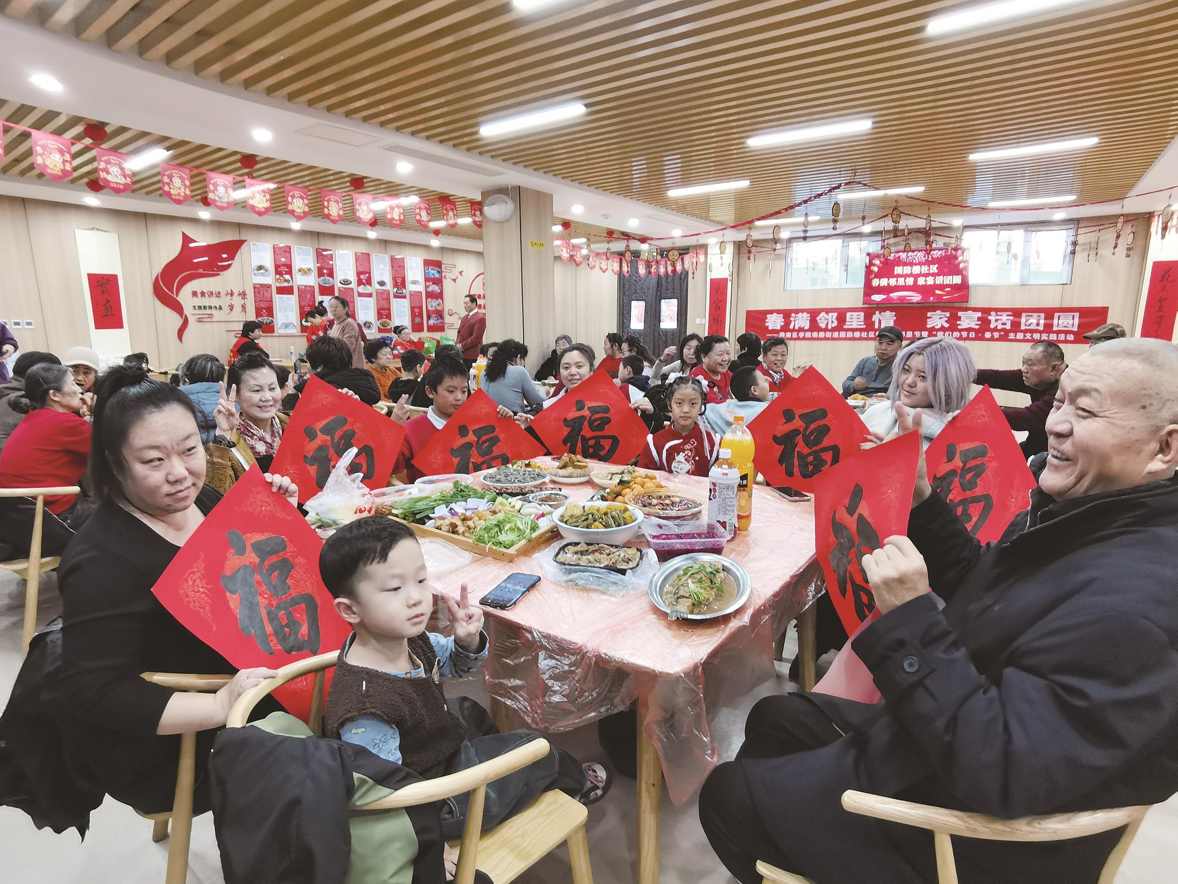 本报讯 (记者梁赞英)“这红烧肉做得忒好,香而不腻!”“大鱼大肉吃多了,还有自制的水果罐头解腻,贴心。”……春节临近,一场别开生面的“春满邻里情 家宴话团圆”百家宴活动在路南区学院南路街道国防楼社区拉开帷幕,百余名社区居民欢聚一堂,以食为媒,以情为线,讲述家的故事,传递邻里温情。