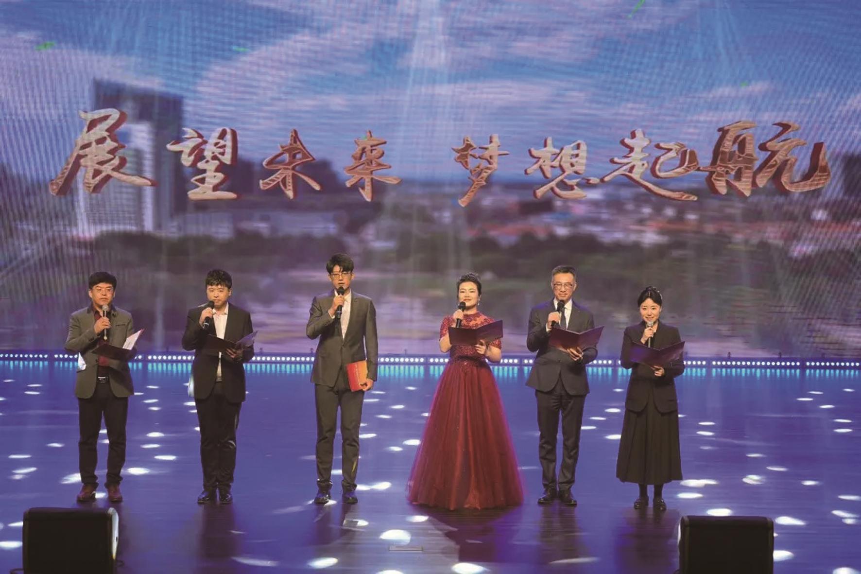 高新区企业开元集团、汇中仪表、百川集团、鹰眼科技、默盾科技带来《展望未来 梦想启航》朗诵,每一个企业的奋斗历程都化作诗句中的动人篇章,凝聚着全体员工的智慧与汗水,是对过往努力的深情致敬,是对未来发展的美好憧憬。