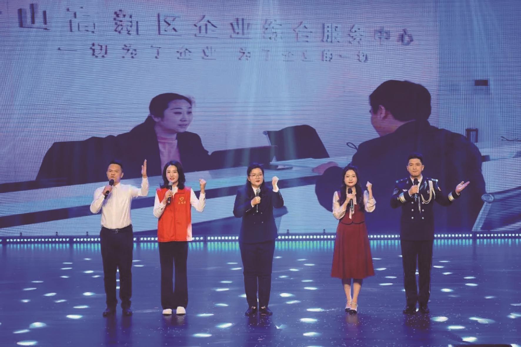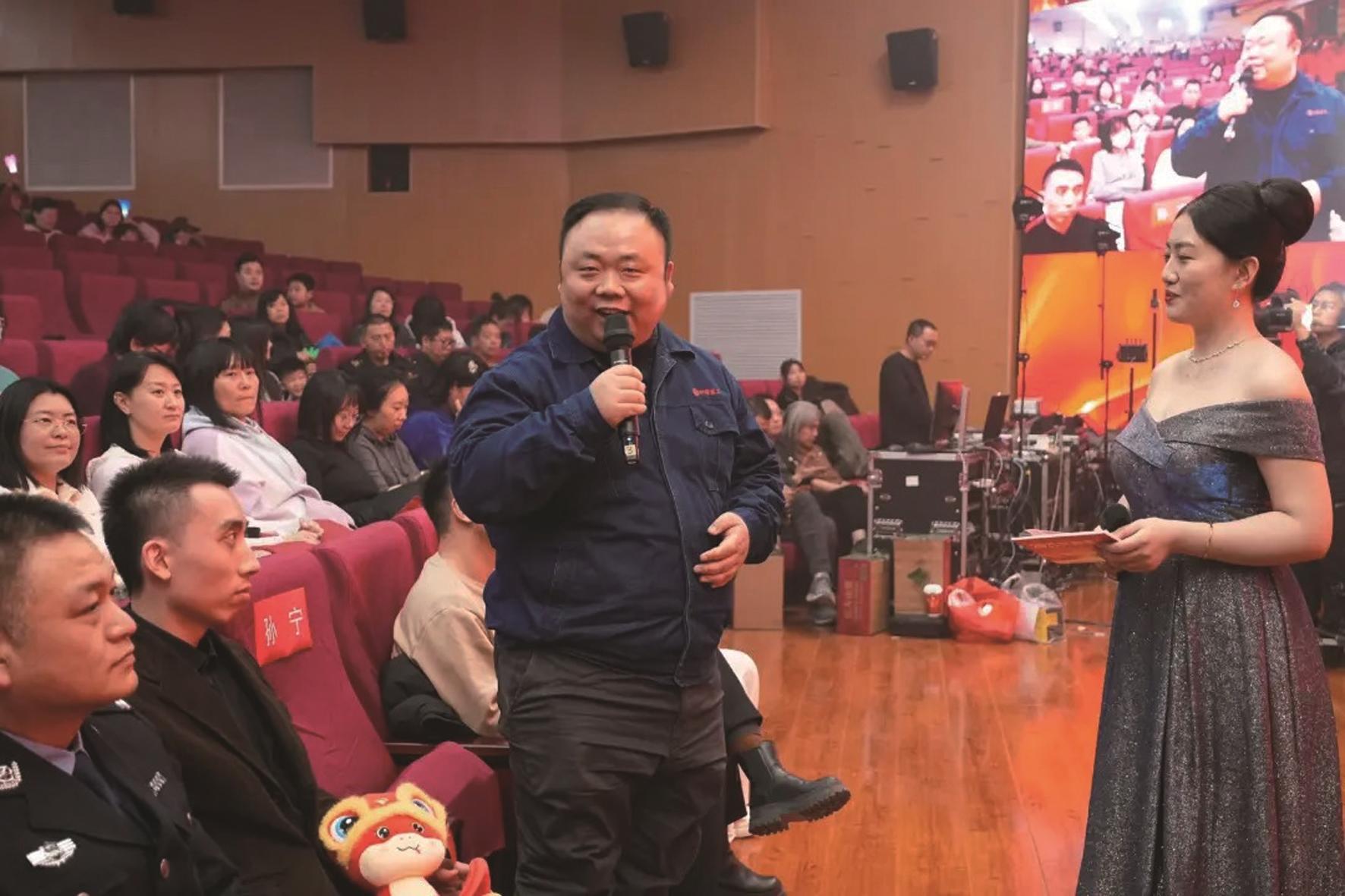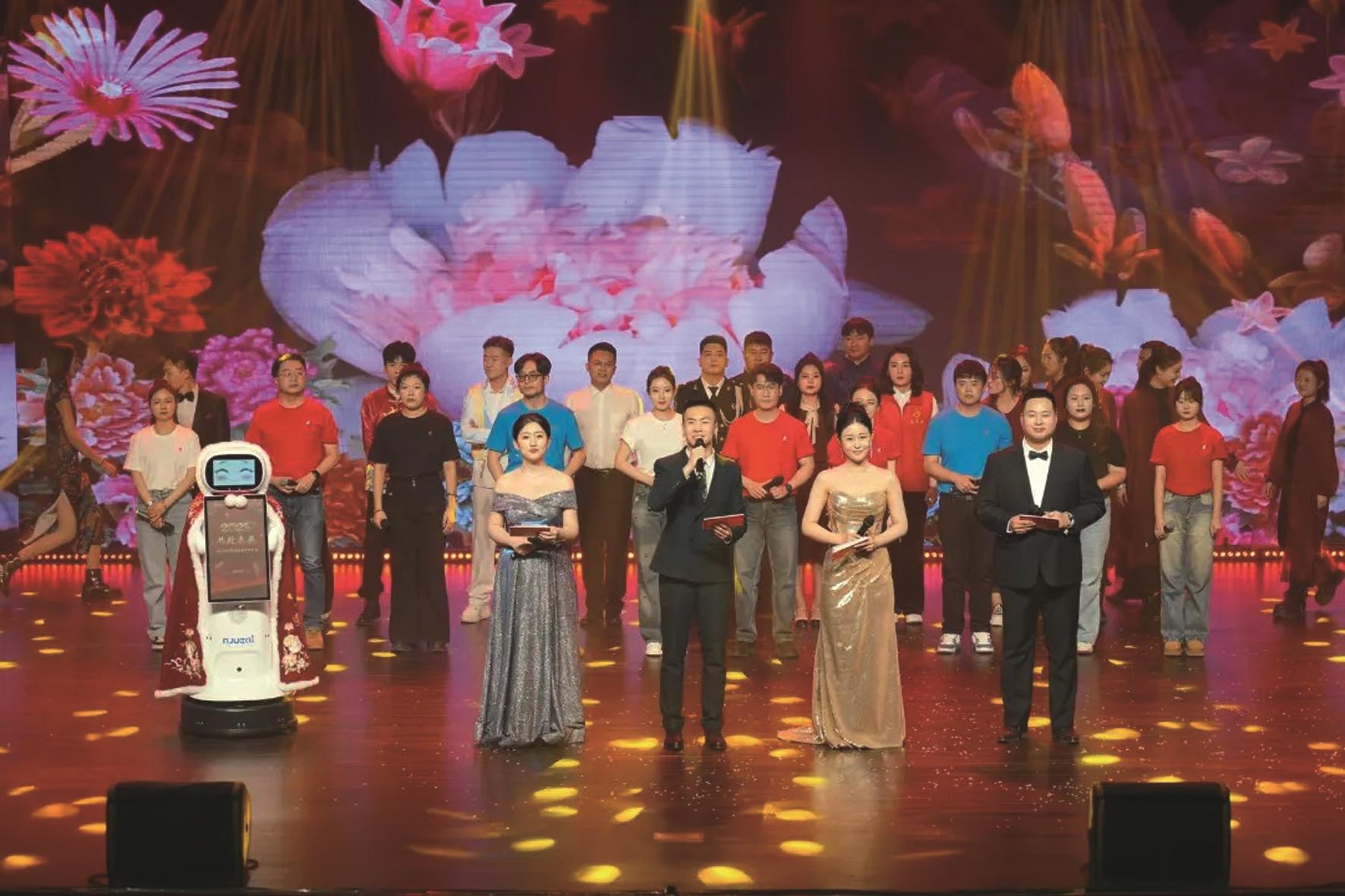 演出节目形式多样,内容丰富。歌曲联唱《天地龙鳞》《龙的传人》寓意高新区如巨龙腾飞的发展态势,激昂的歌声和优美的伴舞,让观众感受到高新区人民传承龙的精神、拼搏奋进的决心;情景朗诵《展望未来 梦想启航》由开元集团、汇中仪表、百川集团等多家企业代表朗诵,生动展现了高新区企业在智能制造领域的辉煌成就与创新精神,让观众深刻领略到高新区的科技实力;沙画音舞《父亲写的散文诗》则以细腻的情感打动人心,通过沙画展现企业员工的奋斗精神以及对家乡亲人的思念,引发了强烈的情感共鸣;相声《机器人也疯狂》以幽默诙谐的方式,围绕机器人智能制造产业和共享工厂主题,列举生活中机器人的应用,让观众在欢笑中感受科技发展给生活带来的便利……