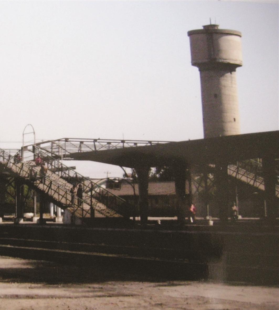 铁路水塔。位于车站站台南侧围墙外,铁路建筑段院内,钢筋混凝土结构,水塔建于1939年,高达24米,容积30吨。这座水塔在唐山大地震中安然无恙,现在仍是铁路部门主要供水设施。 (本文图片由作者提供)