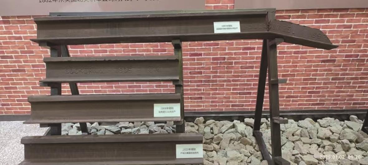 唐山站站史馆陈列着三件镇馆之宝:其一是1898年火车头使用的车轮,其二是1950年中国第一本技规,其三是1897年至1940年不同年代的钢轨。