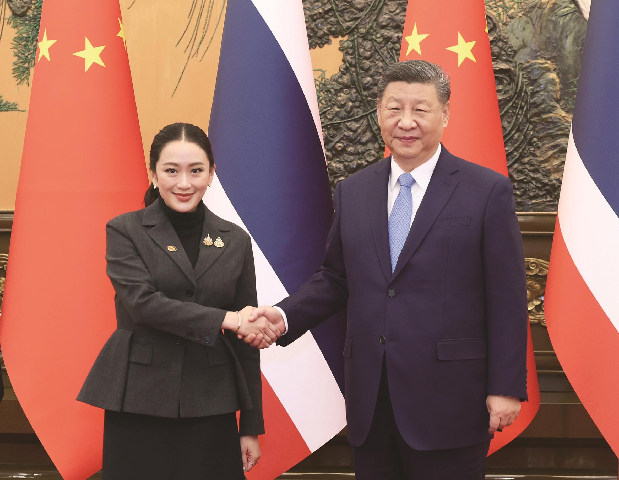 新华社北京2月6日电 (记者董雪、邵艺博)2月6日上午,国家主席习近平在北京人民大会堂会见来华进行正式访问的泰国总理佩通坦。