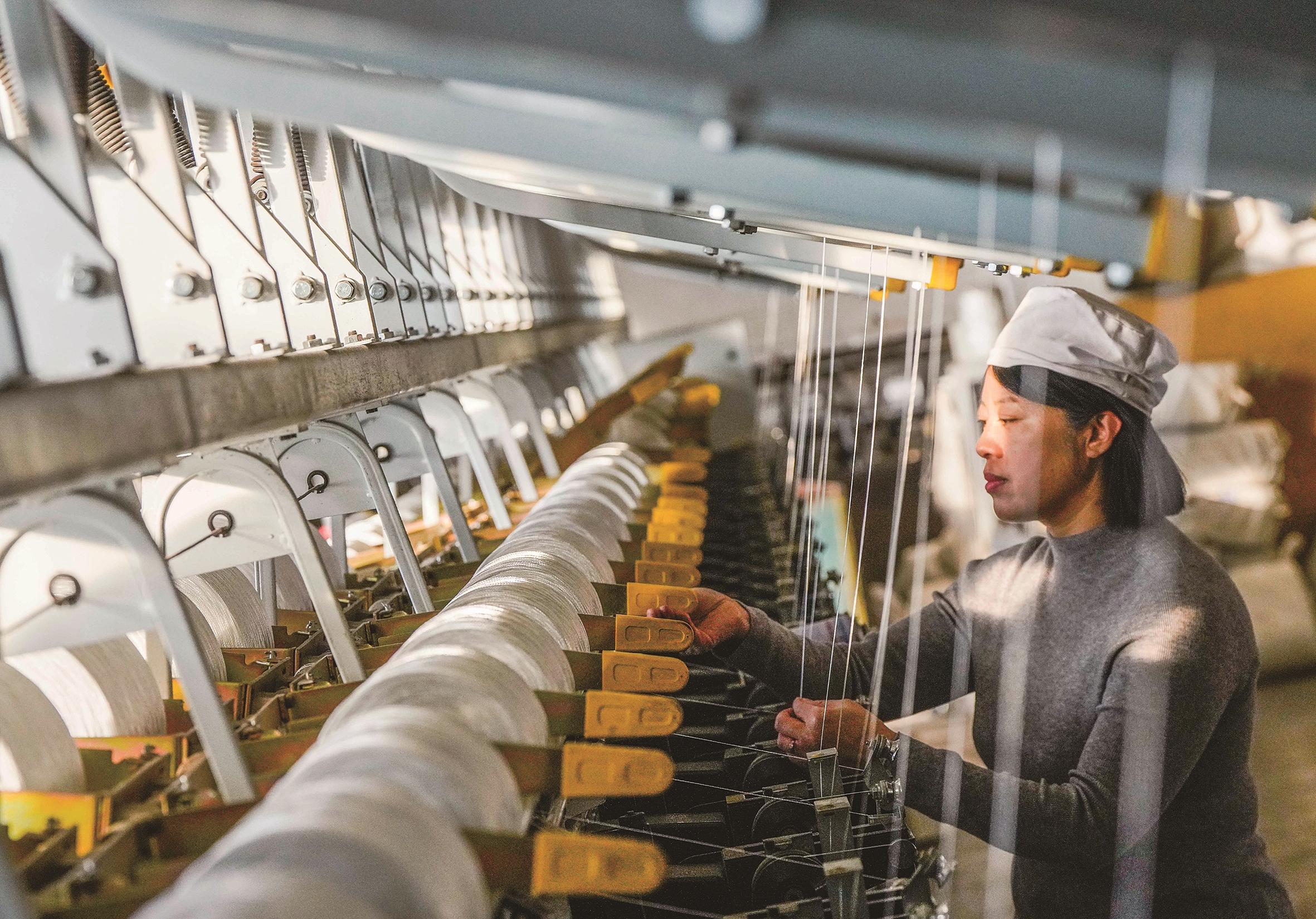 春节假期过后,各地企业铆足干劲忙生产,力争首季“开门红”。 图为工人在河北省遵化市西下营满族乡一家化纤纺织企业车间工作。