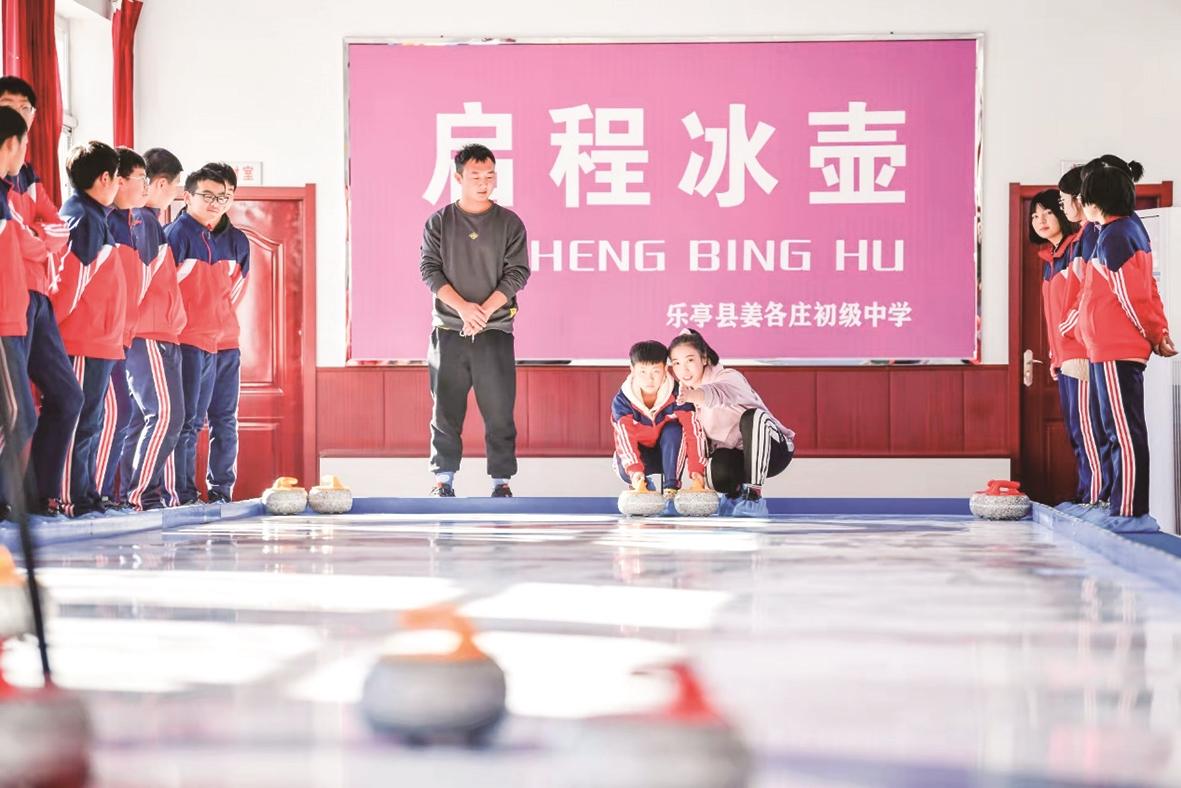 走进乐亭县姜各庄镇初级中学,校长付永国正带领着孩子们进行冰壶训练。在校荣誉室,河北省第一届冰雪运动会冰壶比赛青年甲组冠军,河北省第四届冰雪运动会冰壶学生甲组冠军、社会乙组亚军,2023年河北省青少年冰壶锦标赛男子组、女子组双冠,2024年河北省第五届冰雪联赛冠军,河北省第16届青少年冰壶锦标赛男子乙组冠军、混双乙组冠军……一个个闪光的荣誉,记录着这个乡镇中学的“逆袭”之路。