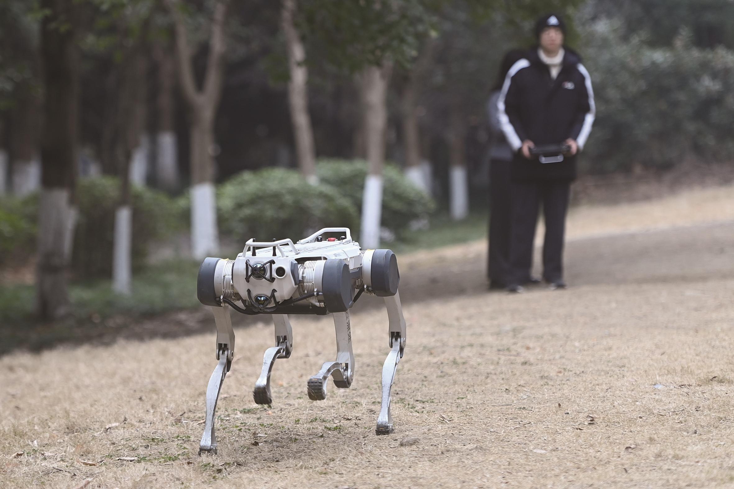 宇树科技、云深处科技“身手不凡”。如宇树科技去年底发布的B2-W机器狗,能轻松应对翻山、涉水、跳高和负重载人等场景,并在工业巡检、应急救援等场景实现商业化应用。云深处科技的机器人“绝影X30”已在新加坡电力隧道进行巡检。