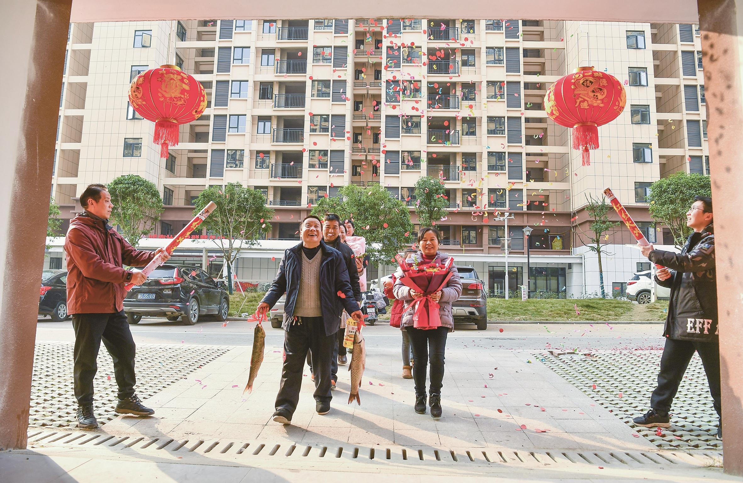 2025年1月15日,江西省宜春市铜鼓县永宁镇城南社区文昌苑安置小区居民搬入新居。 新华社发(周亮 摄)