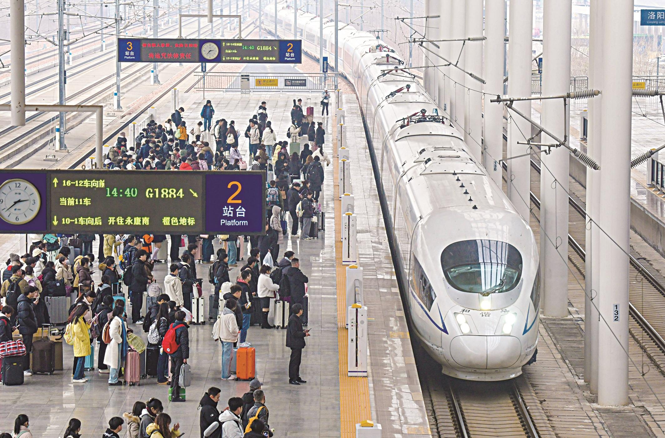 图为2月22日,旅客在河南洛阳龙门站乘车出行。 新华社发(张怡熙 摄)