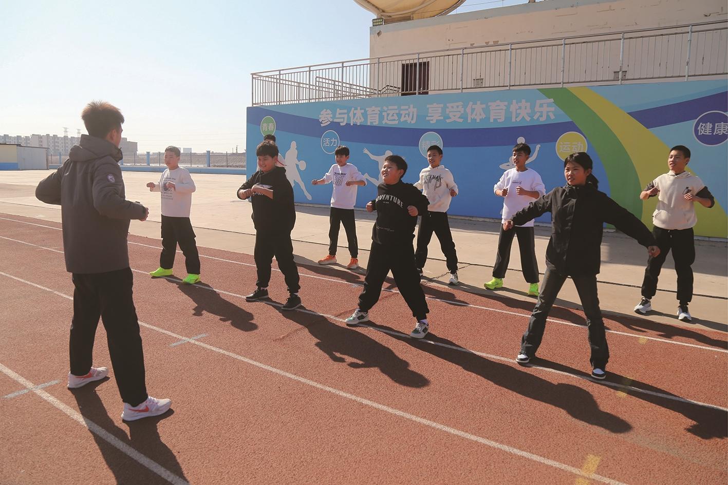 ?图为丰南区黑沿子小学的小学生展露健康体魄。记者 刘大民 摄