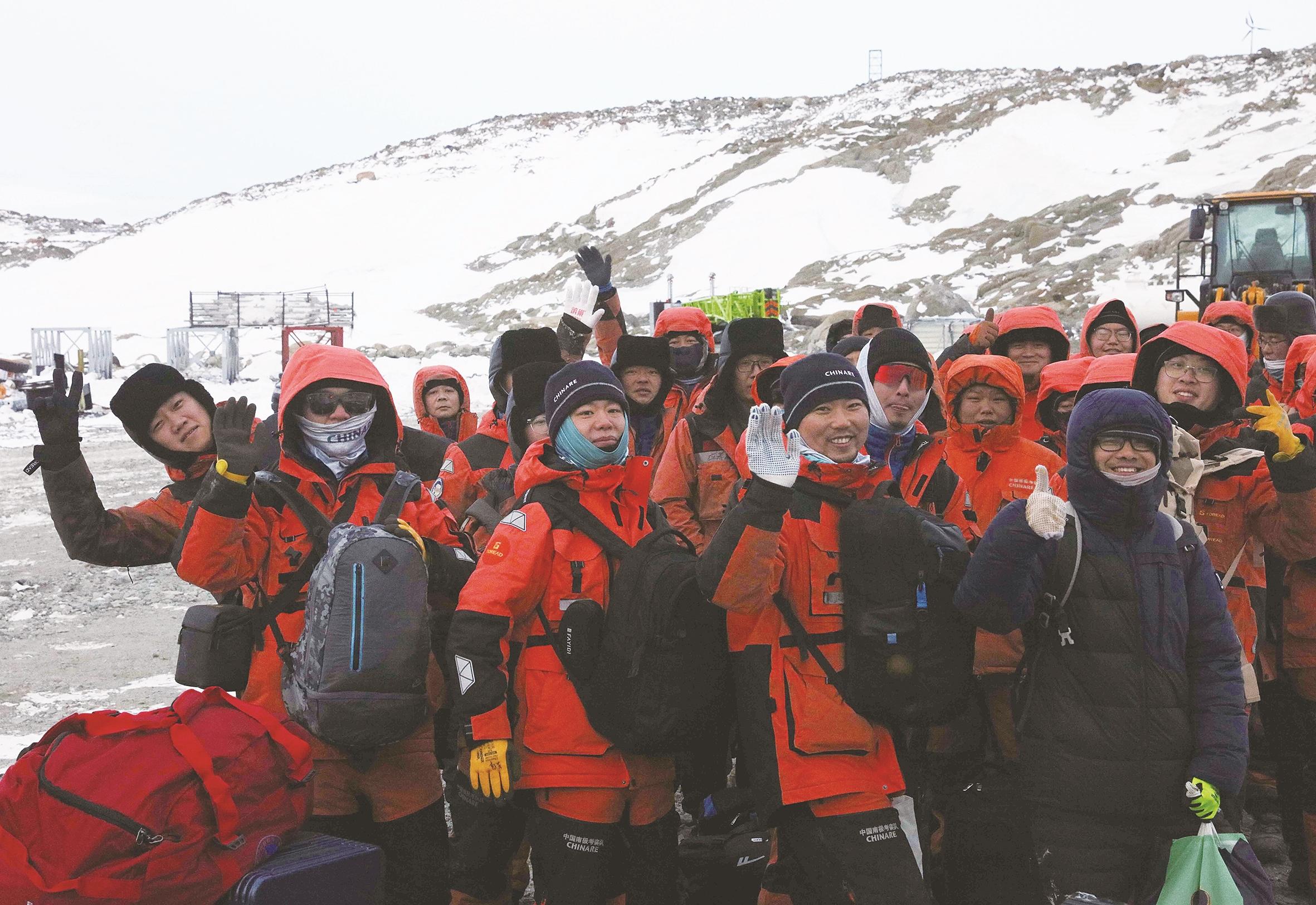 随着中国第41次南极考察秦岭站度夏任务接近尾声,51名参与度夏工作的考察队员踏上返程。两个月的时间里,他们顶着严寒、狂风、暴雪等恶劣天气,完成通信、新能源、海水淡化等各种系统设施的安装调试。离别惆怅与归乡欣喜交织,队员们相互拥抱,互道珍重,挥手告别这块挥洒了无数汗水的冰原大陆。