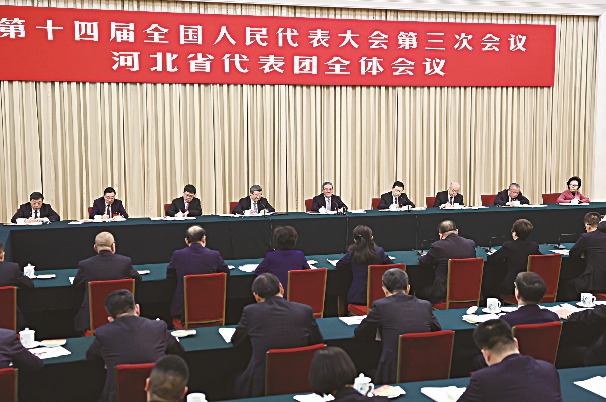 3月6日下午,中共中央政治局常委、国务院总理李强参加十四届全国人大三次会议河北代表团审议。 新华社记者 黄敬文 摄