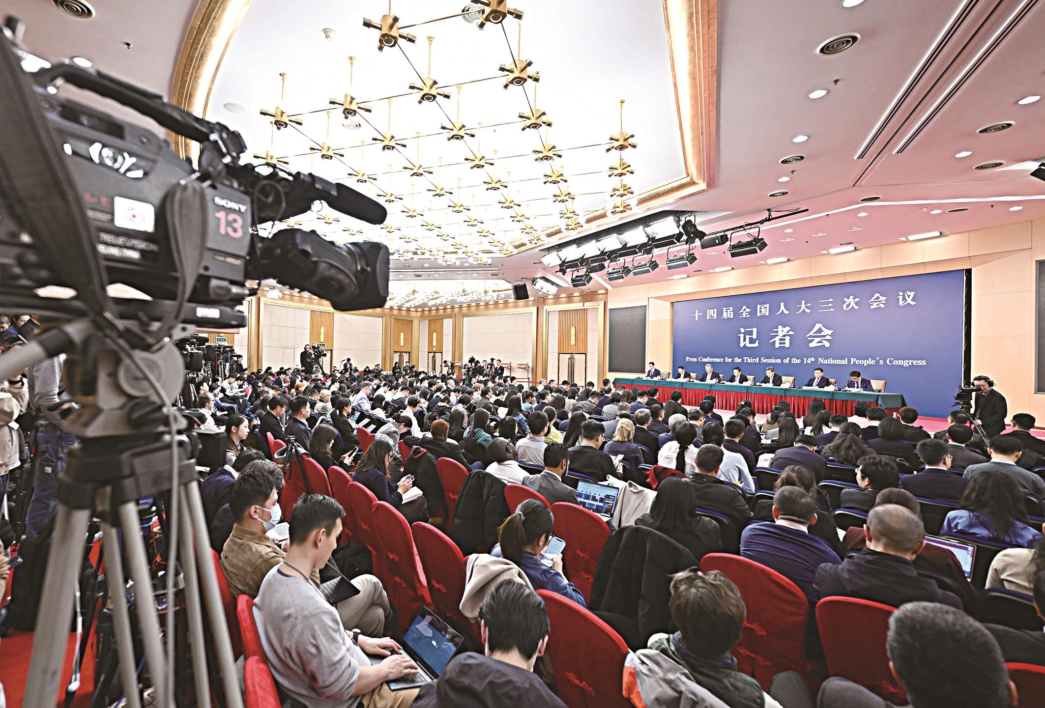 3月6日,十四届全国人大三次会议在北京梅地亚中心新闻发布厅举行记者会。国家发展和改革委员会主任郑栅洁、财政部部长蓝佛安、商务部部长王文涛、中国人民银行行长潘功胜、中国证券监督管理委员会主席吴清就发展改革、财政预算、商务、金融证券等相关问题回答中外记者提问。