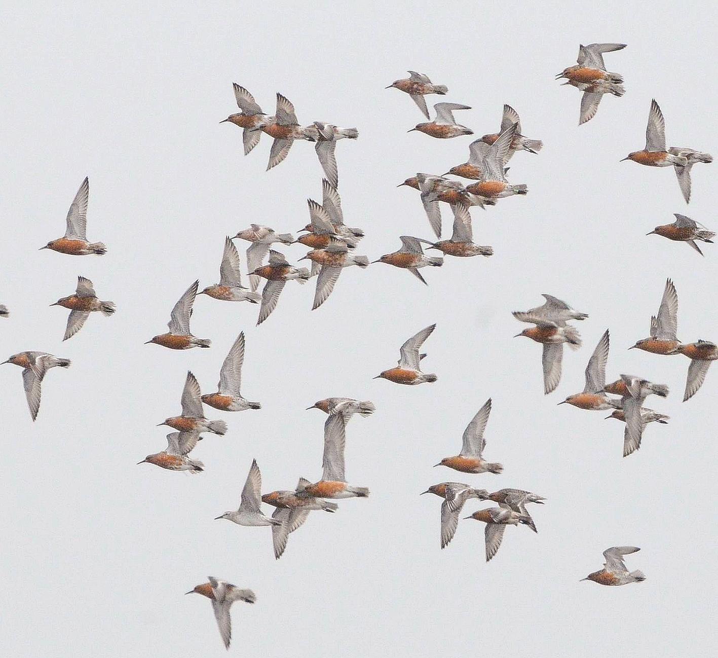 “每年有大量的红腹滨鹬、黑尾塍鹬等候鸟迁徙途经我市,在滦南嘴东、曹妃甸南堡湿地一带停歇。”唐山市自然资源和规划局野生动植物保护与湿地管理科科长张海峰介绍。