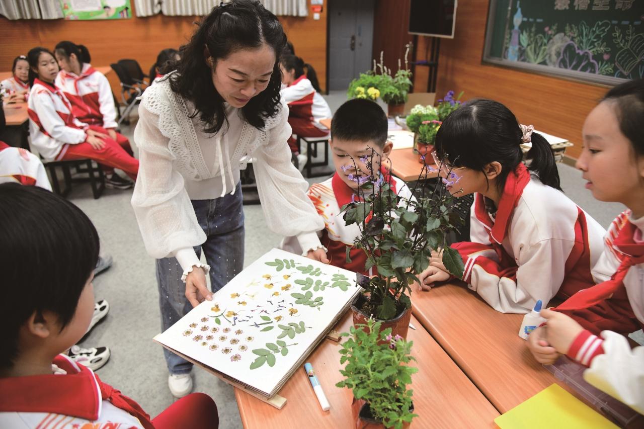 同样,在外国语实验小学的“桃李农科馆”,学生需要在劳动的同时完成跨学科项目式学习任务,从“食农”“食知”“食探”“食操”“食理”五个方面了解药食同源的原理,涵盖育苗、种植、采摘、品尝全过程,学生在躬身劳作中学习到质朴的劳动智慧。