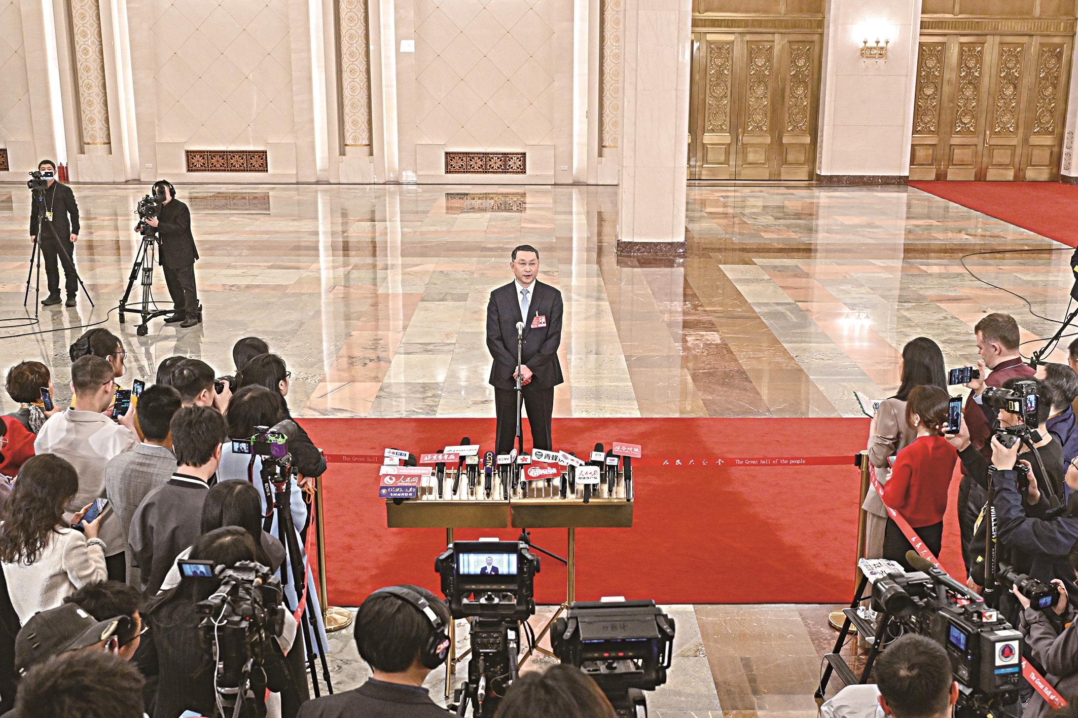 3月11日,第十四届全国人民代表大会第三次会议第三场“部长通道”集中采访活动在北京人民大会堂举行。这是自然资源部部长关志鸥接受媒体采访。