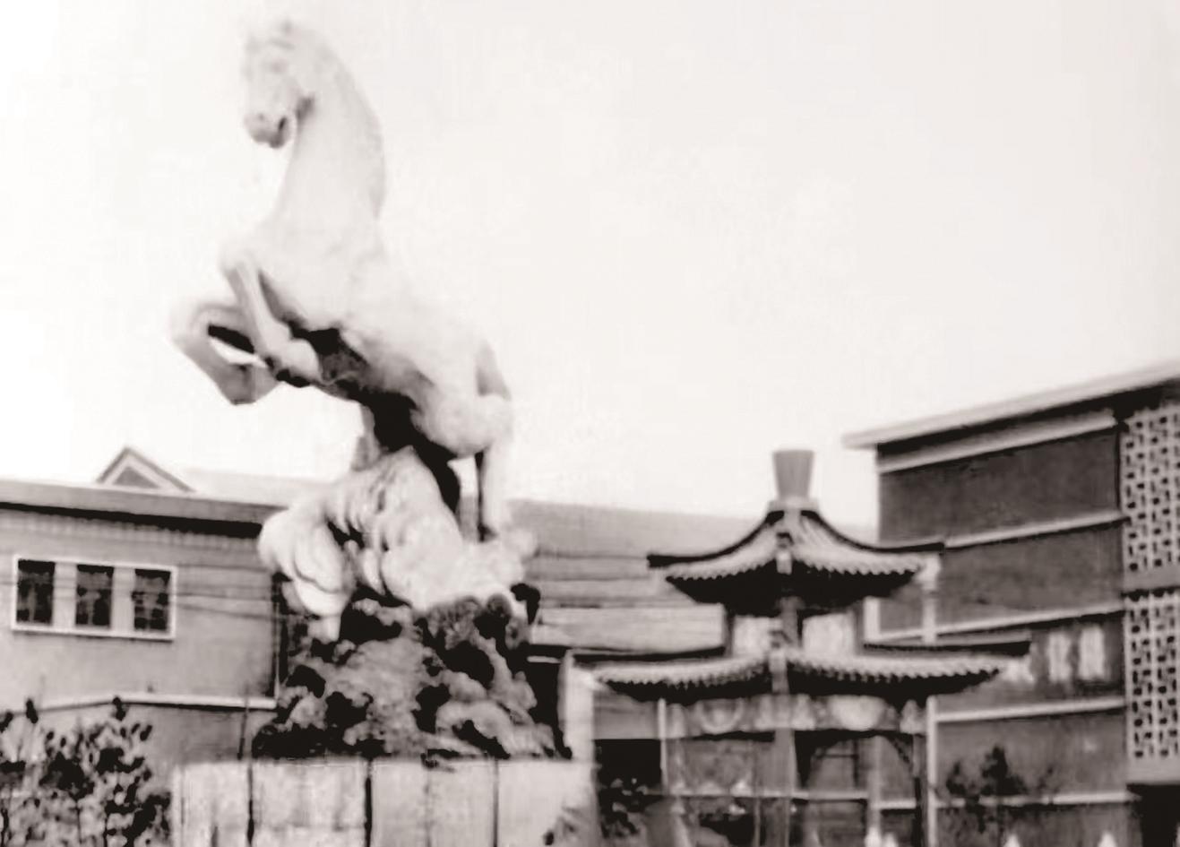 1986年9月,新“奔腾马”雕塑完工后,由启新水泥厂于1986年底重新立在南门的办公楼前面。