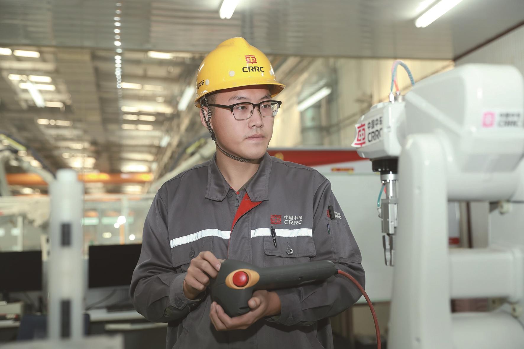 ▲李子禹在车间操作工业机器人。 资料片