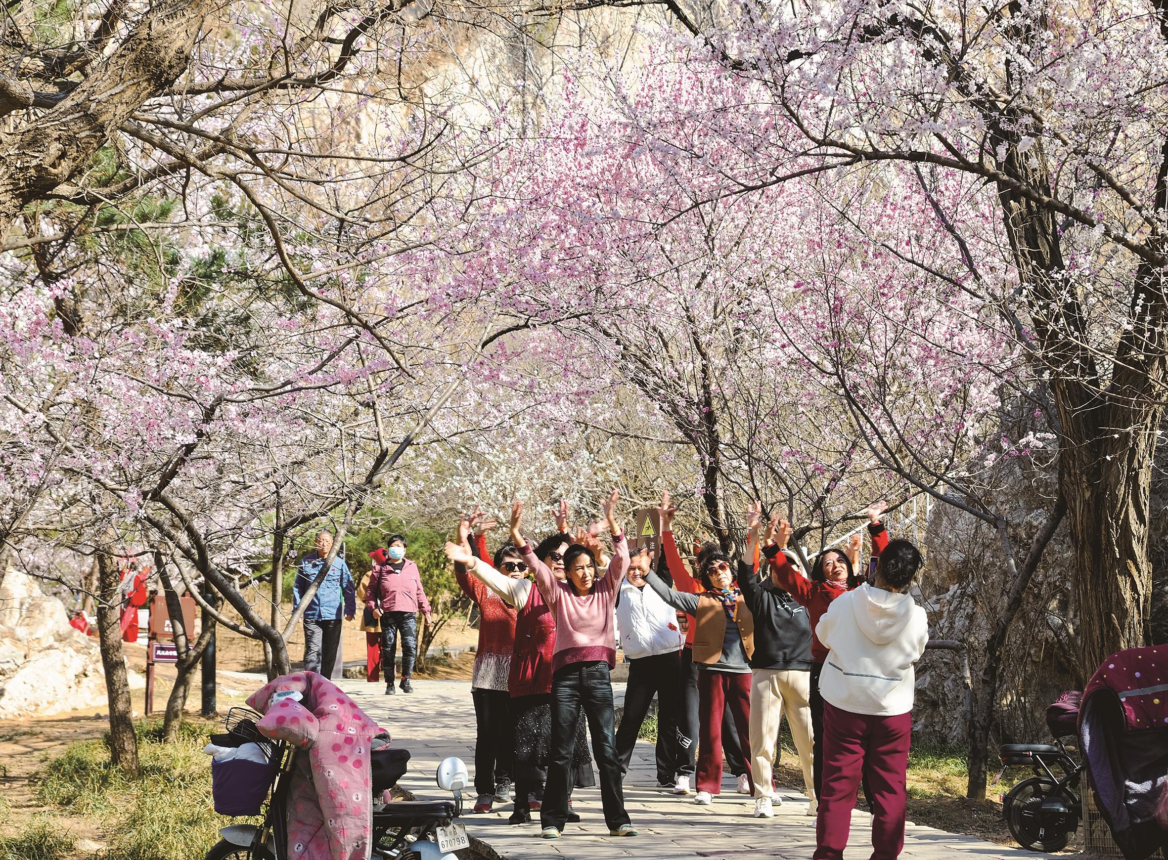 早春时节,气温回升,凤凰山公园里的花开了,引得市民们纷纷驻足,迫不及待掏出手机,镜头追随着繁花,与春花合影。