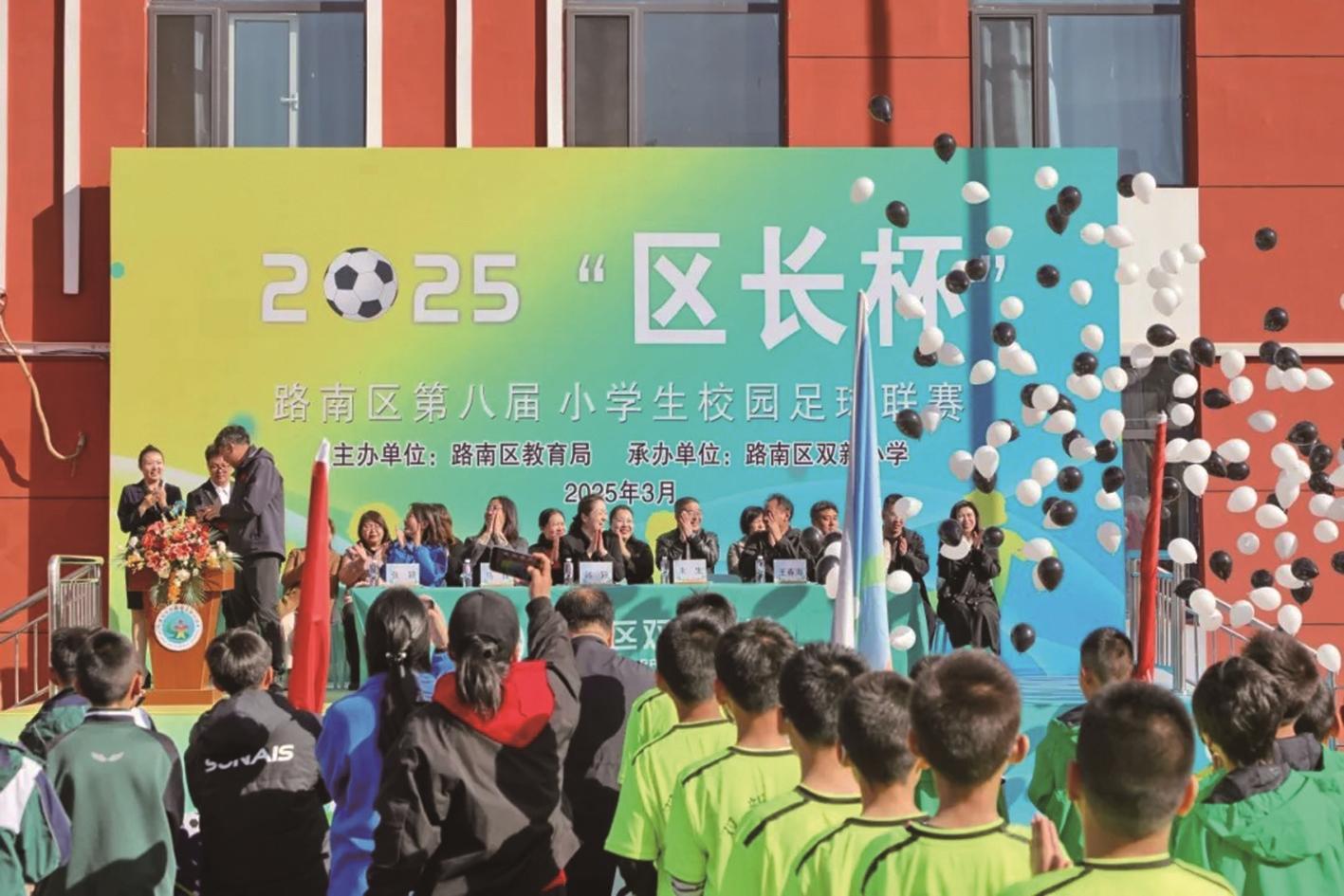 本报讯 (陆南)春风和煦,春光明媚,路南区双新小学绿茵场上旌旗飞扬,区第八届“区长杯”小学生校园足球联赛在这里精彩上演。在为期5天的比赛中,20支队伍展开34场激烈角逐,小球员们奋勇拼搏,以精湛的球技和积极向上的精神风貌,充分展现了校园足球的无限魅力。