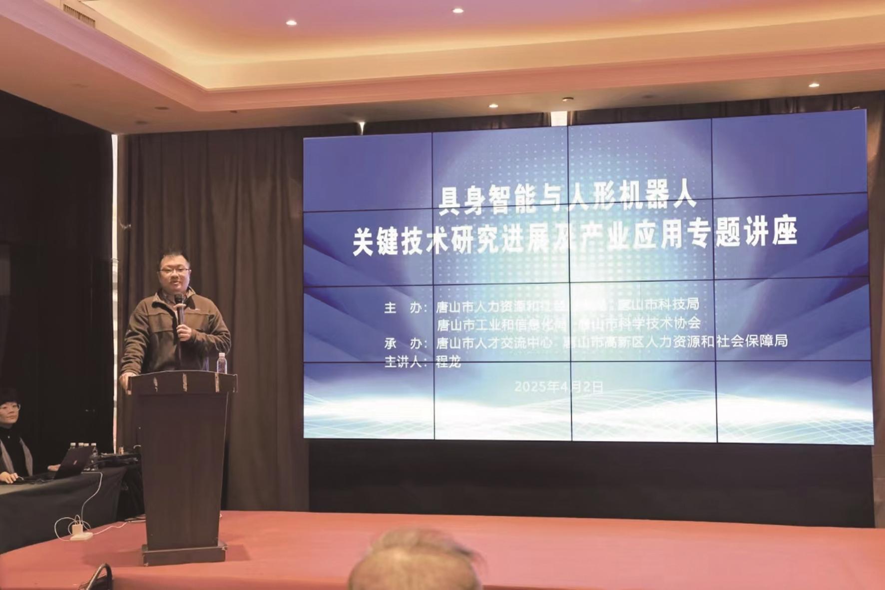 本报讯 (记者王楠)近日,由市人社局、市工信局、市科技局、市科协联合举办的“具身智能与人形机器人关键技术研究进展及产业应用”专题讲座圆满落幕。这是我市企业管理人才能力提升工程的第三期专题讲座,前两期分别聚焦于“从DeepSeek说起——人工智能智慧城市高质量发展”和“依法治企·和谐用工——《劳动合同法》深度解读与风险防控”。此次活动再次吸引了众多企事业单位的积极参与,其中包括二十二冶集团、百川集团、唐山百川智能机器股份有限公司、中信重工开诚智能装备有限公司、华北理工大学等,共有106名企业中高层管理人员及科研团队成员参加了本次培训。