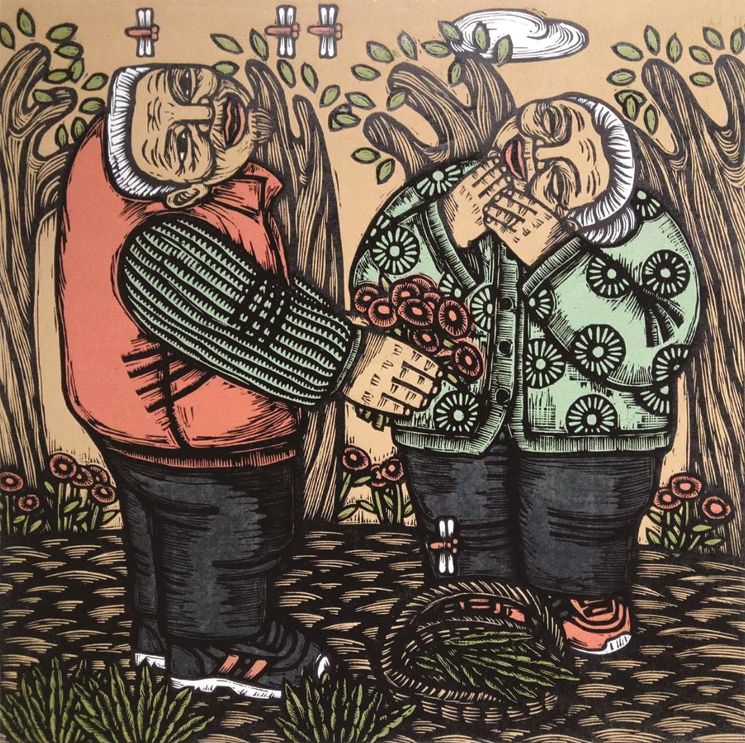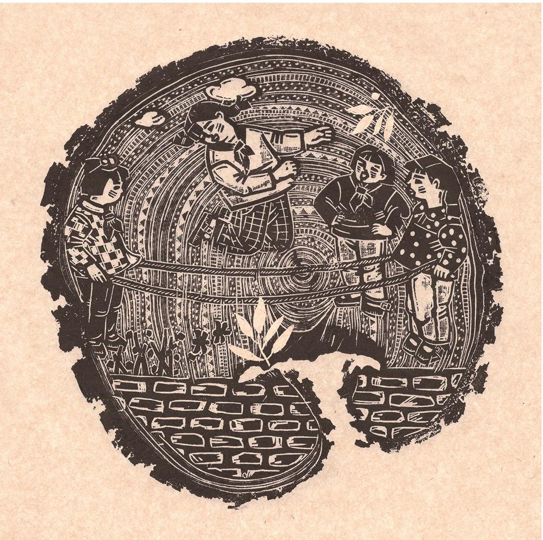 周丽云 《朝花夕拾组画之跳皮筋》 版画