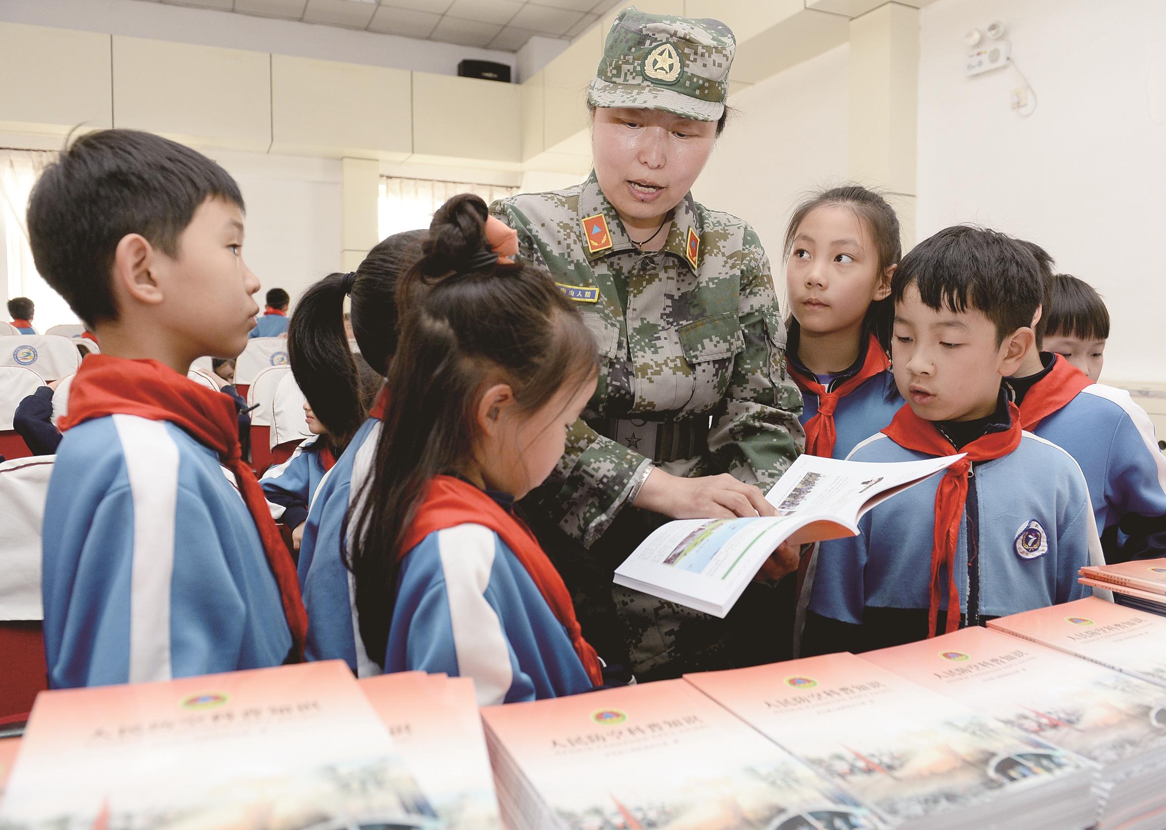 图为工作人员正在为学生们讲解国防知识。 本报记者 杜雯拓 摄
