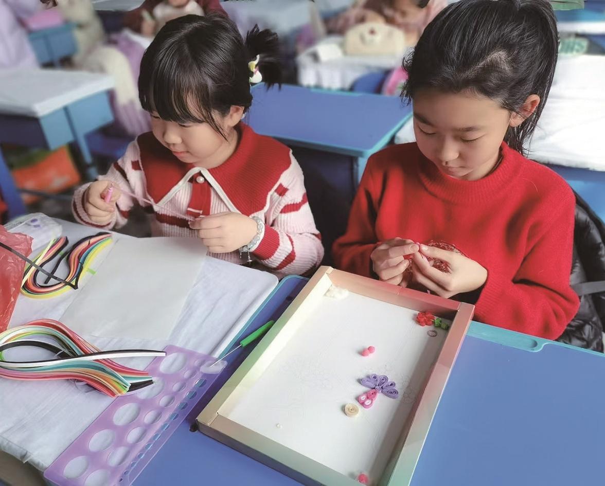 本报讯 (记者 王欢)在“双减”政策引领下,七十号小学持续深化素质教育改革,将传统手工艺与现代美育有机融合,开设衍纸画社团。孩子们在一卷一粘间感受非遗艺术的灵动魅力,在缤纷纸艺创作中实现综合素质的提升,为校园文化生活增添了一抹独特的艺术亮色。