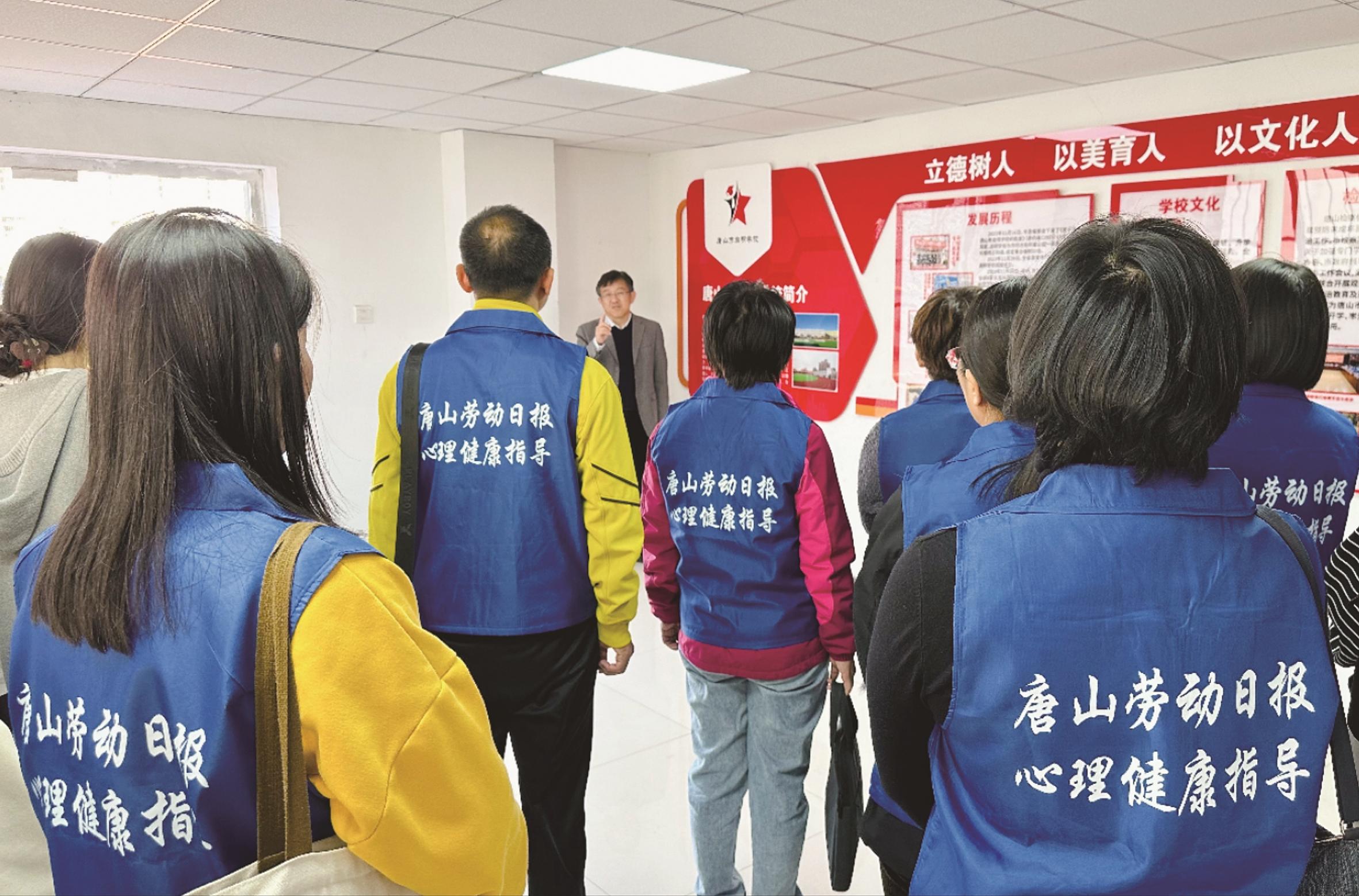 图为启明学校负责人向唐山劳动日报社心理健康指导师团队介绍学校概况。 李颖 摄