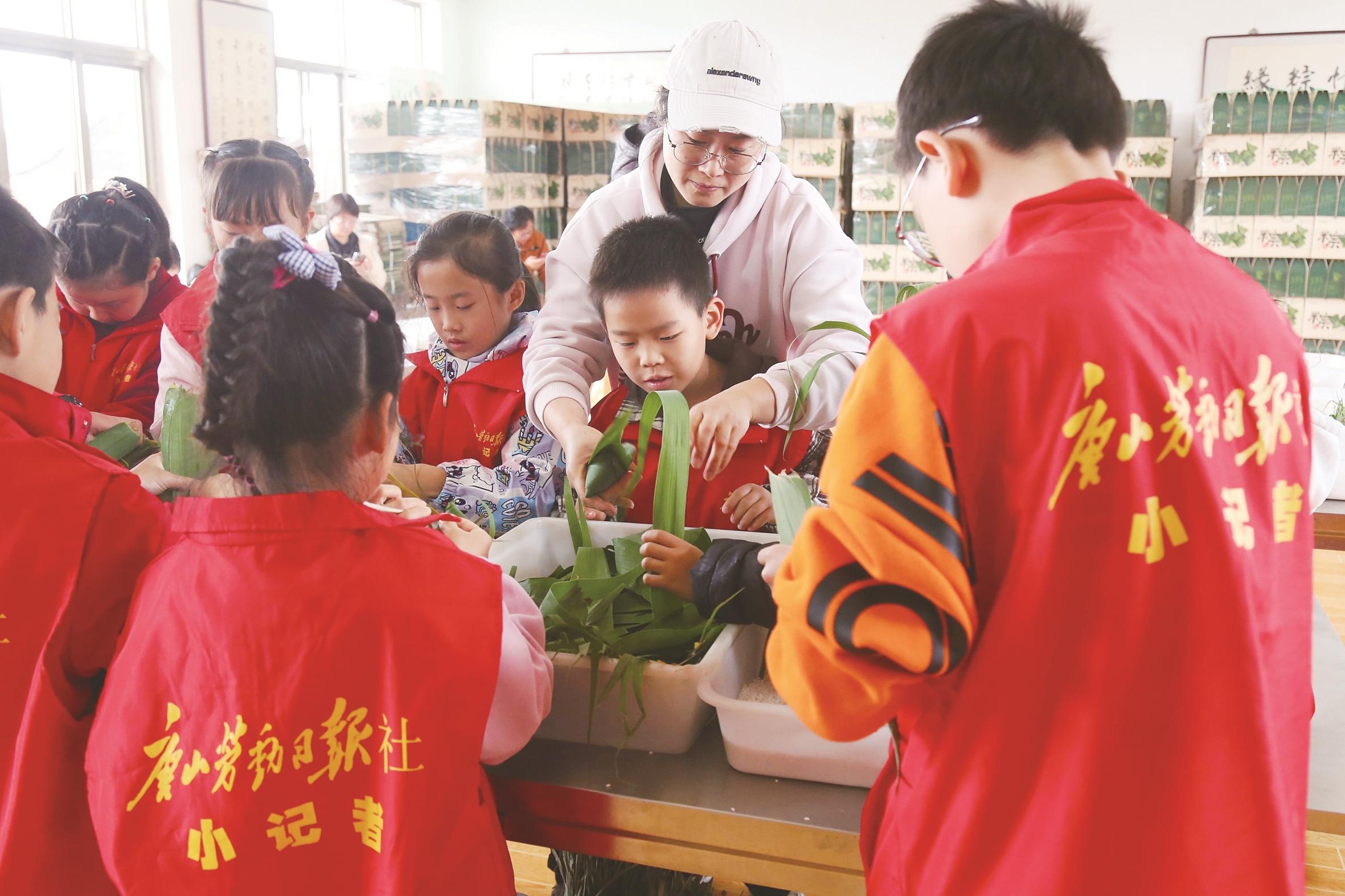 本报讯 (记者赵欣)4月19日,唐山劳动日报社小记者社会实践基地——开平区丰山村“张记米粽”大堂热闹非凡,40名小记者向非遗传承人学习包粽子技艺,提前感受传统文化氛围。