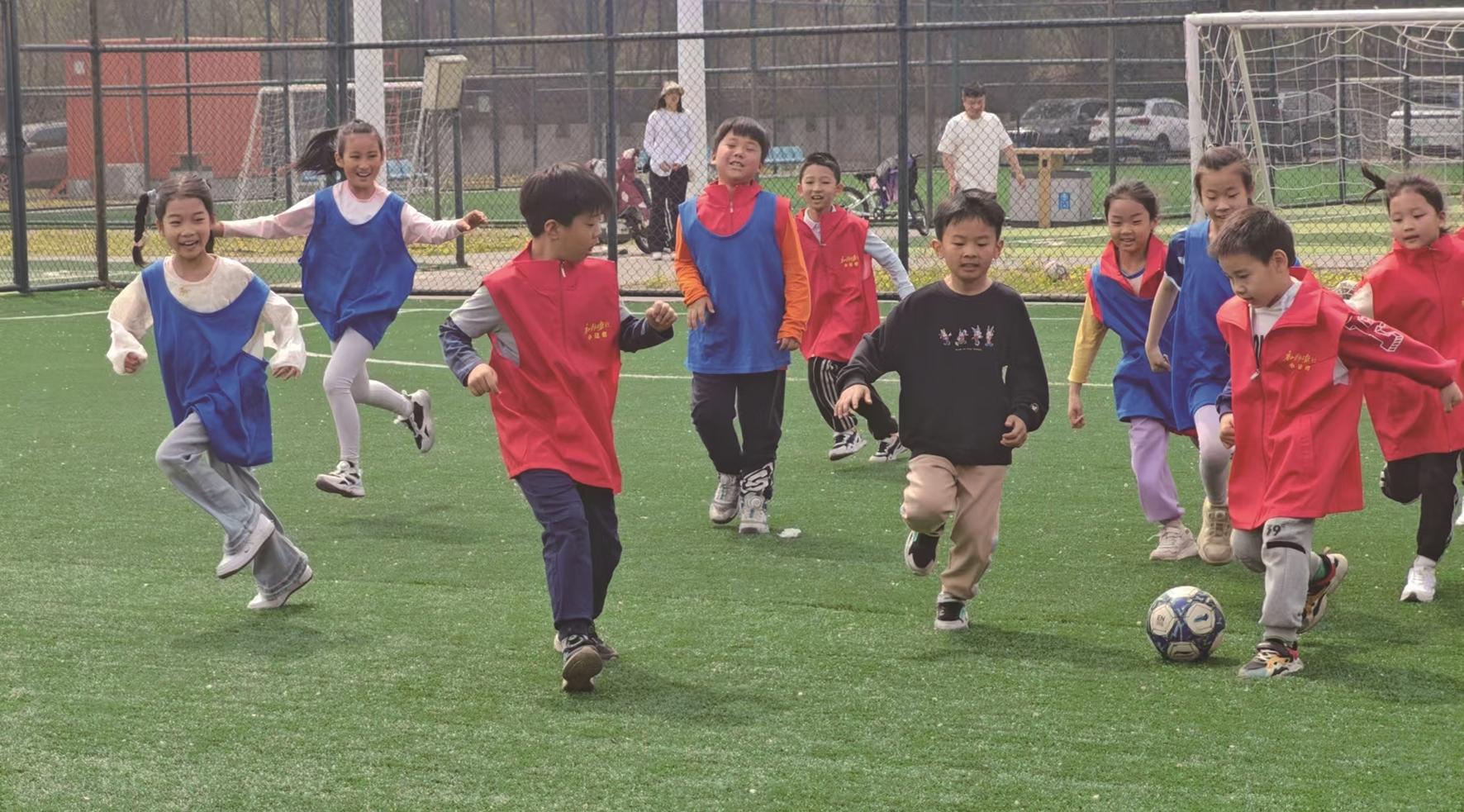 友谊赛将活动推向高潮。小记者们分成四组激烈比拼,“蓝队加油!蓝队加油……”赛场上加油声、欢呼声此起彼伏。一次次成功配合传球,如灵动丝线穿梭防线;一个个精彩射门瞬间,尽显敏捷反应与顽强斗志。小记者们真切体会到团队协作的力量,明白了个人力量与团队默契配合的重要性。