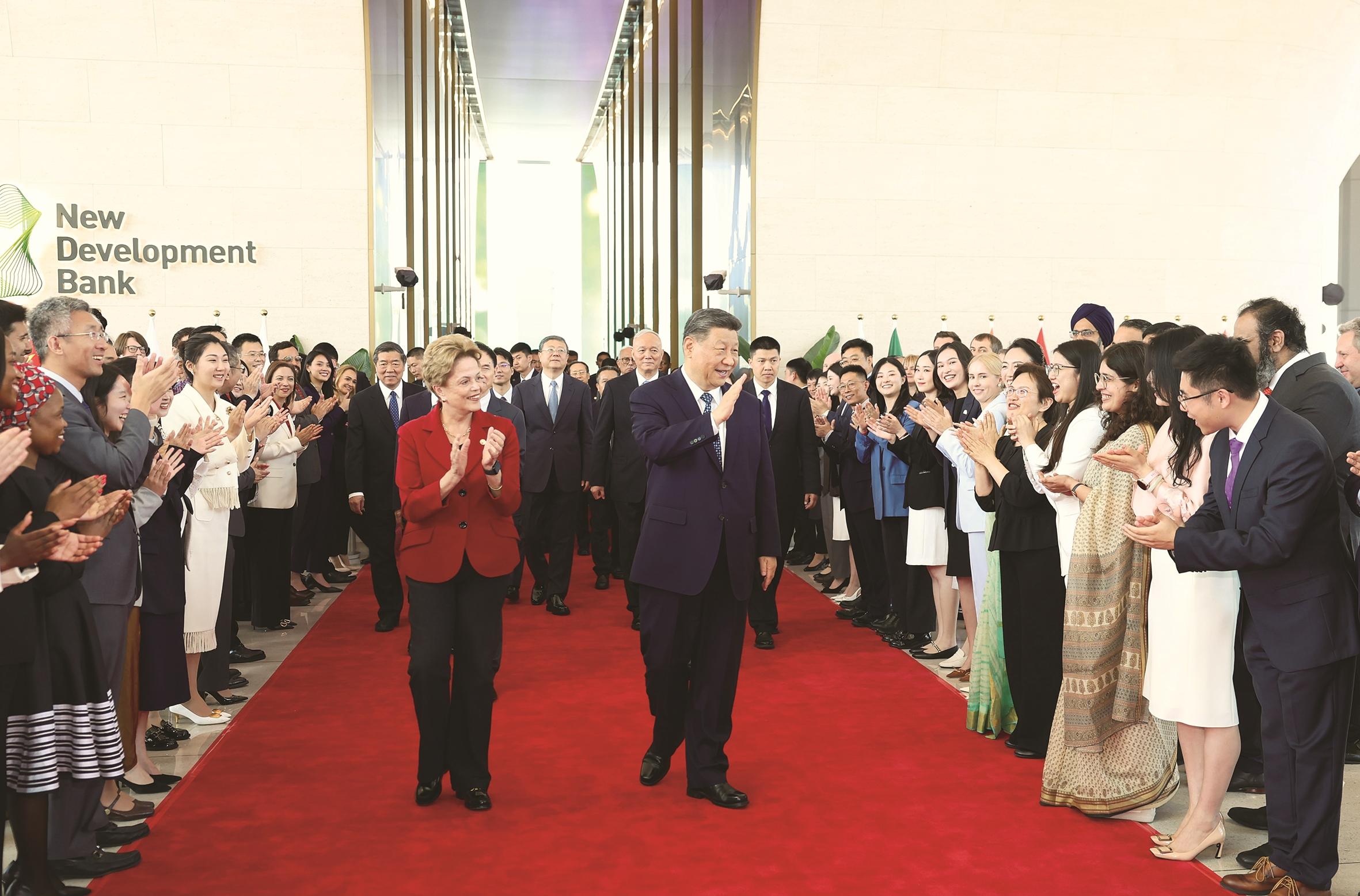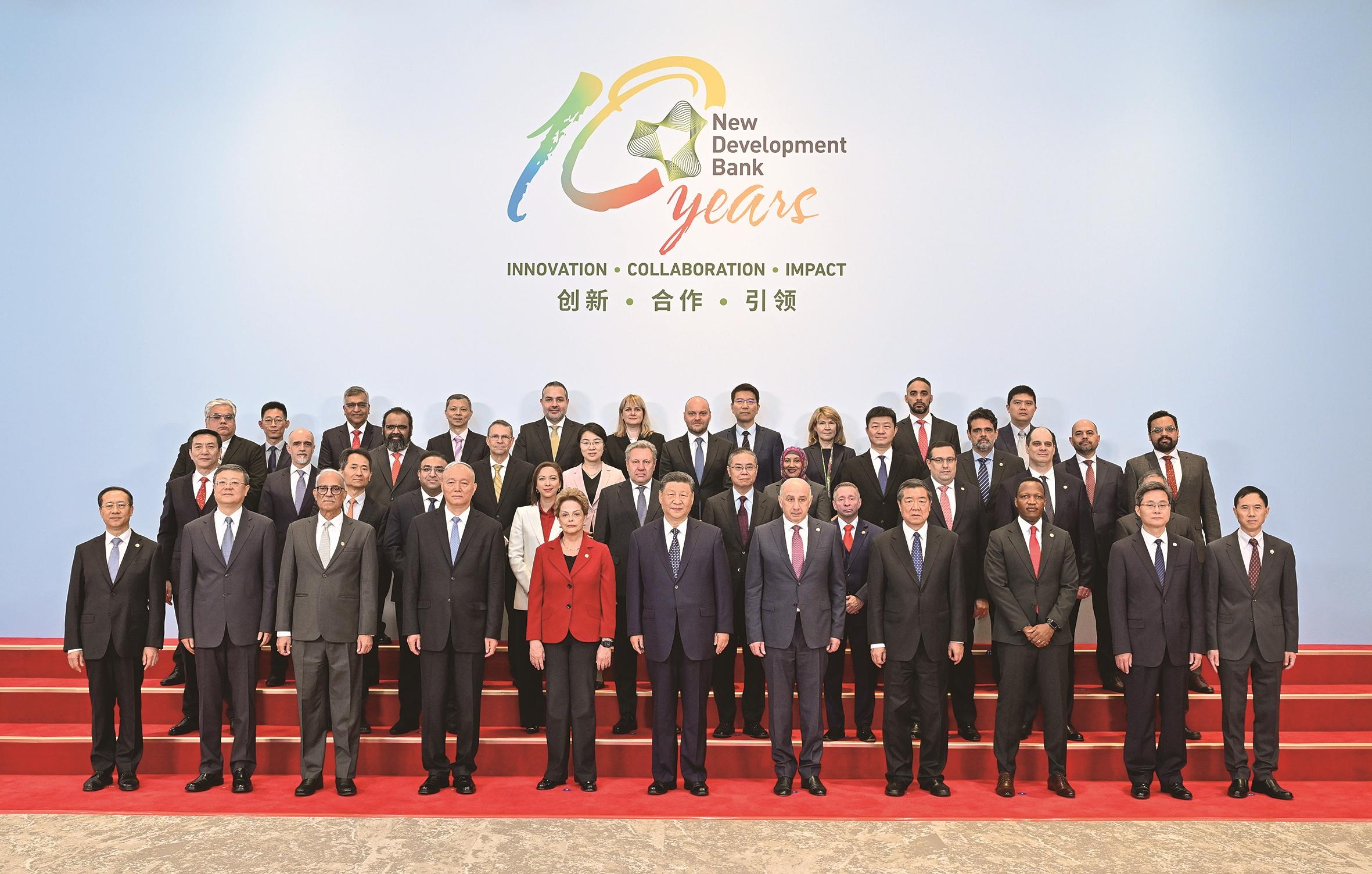 习近平强调,“大金砖合作”已经迈入高质量发展阶段,新开发银行也要开启高质量发展的第二个“金色十年”。要践行初心,紧贴全球南方发展需求,提供更多高质量、低成本、可持续的基础设施融资;练好内功,完善管理和运营,实施更多科技金融、绿色金融项目,助力发展中国家弥合数字鸿沟,加快绿色低碳转型;开拓进取,在国际金融架构改革的讨论中放大全球南方声音,维护全球南方正当权益,支持全球南方国家走好现代化道路。中方作为东道国,将一如既往支持新开发银行运营发展,愿同新开发银行加强项目合作,聚焦绿色、创新、可持续发展,取得更多务实合作成果;愿通过新开发银行同其他成员国分享发展经验,提供更多国际公共产品。