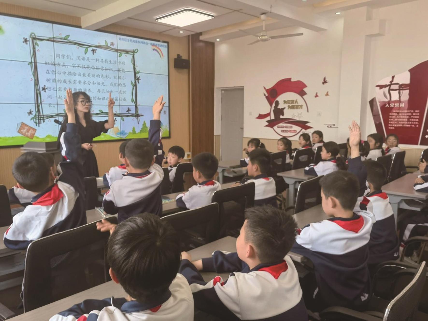 本报讯 (陆南)4月23日,路南区图书馆品牌系列活动“南图讲堂进校园 —— 世界读书日?阅读让我们遇见美好”专题讲座,在路南区联合村小学举行,三年级(1)班50名学生沉浸在知识的海洋中,度过了一段充实而有意义的时光。