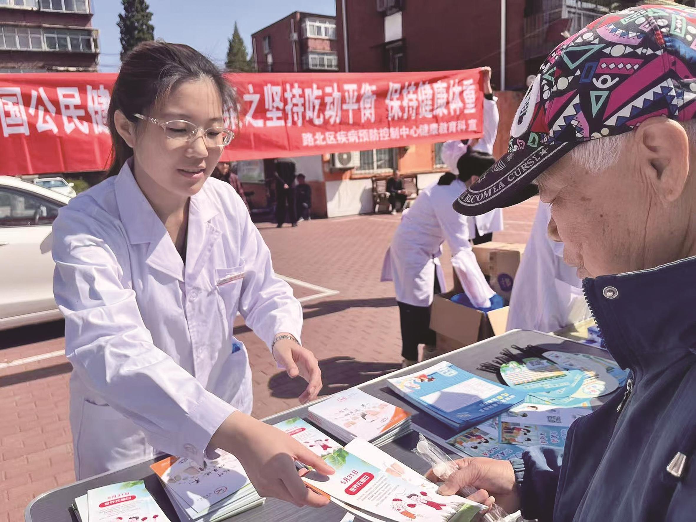 近日,路北区疾控中心党支部与路北区缸窑街道荣华楼社区党支部开展党员“双报到”活动,利用疾控专业知识积极参与社区建设、管理和服务,多维度、全方位开展疾病预防控制宣传。疾控中心党员为社区居民设立咨询台,为中老年人群测量血压,同时现场发放科普知识宣传册、宣传用品,向群众讲解传染病、慢病、职业病、健康生活、计划免疫等科普知识,鼓励培养良好健康生活方式。