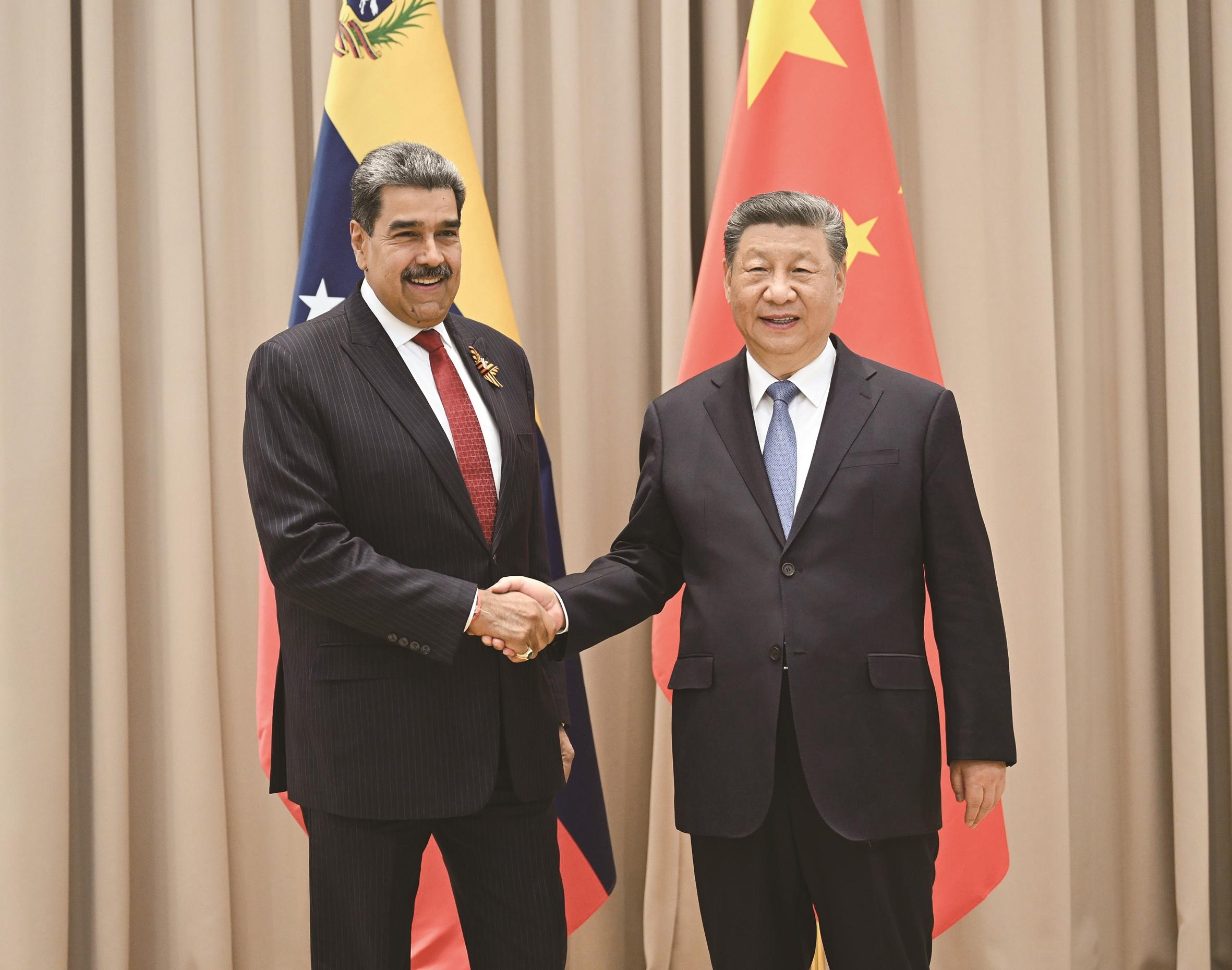习近平指出,中国和委内瑞拉是相互信赖、共同发展的好伙伴,双方在国际风云变化中结下铁杆友谊。2023年我们共同宣布建立中委全天候战略伙伴关系以来,双方各领域各层级交往热络,双边贸易额持续增长,投资合作、人文交流取得新进展,中委友好更加深入人心。中方始终从战略高度和长远角度看待和发展同委内瑞拉关系,将一如既往坚定支持委方维护国家主权、民族尊严、社会稳定,愿同委方加强治国理政经验交流,持续深化各领域务实合作,推动中委关系不断迈上新台阶,更好造福两国人民。中方愿同委内瑞拉等拉美国家一道,坚定维护以联合国为核心的国际体系和以国际法为基础的国际秩序,推动中拉命运共同体建设行稳致远。