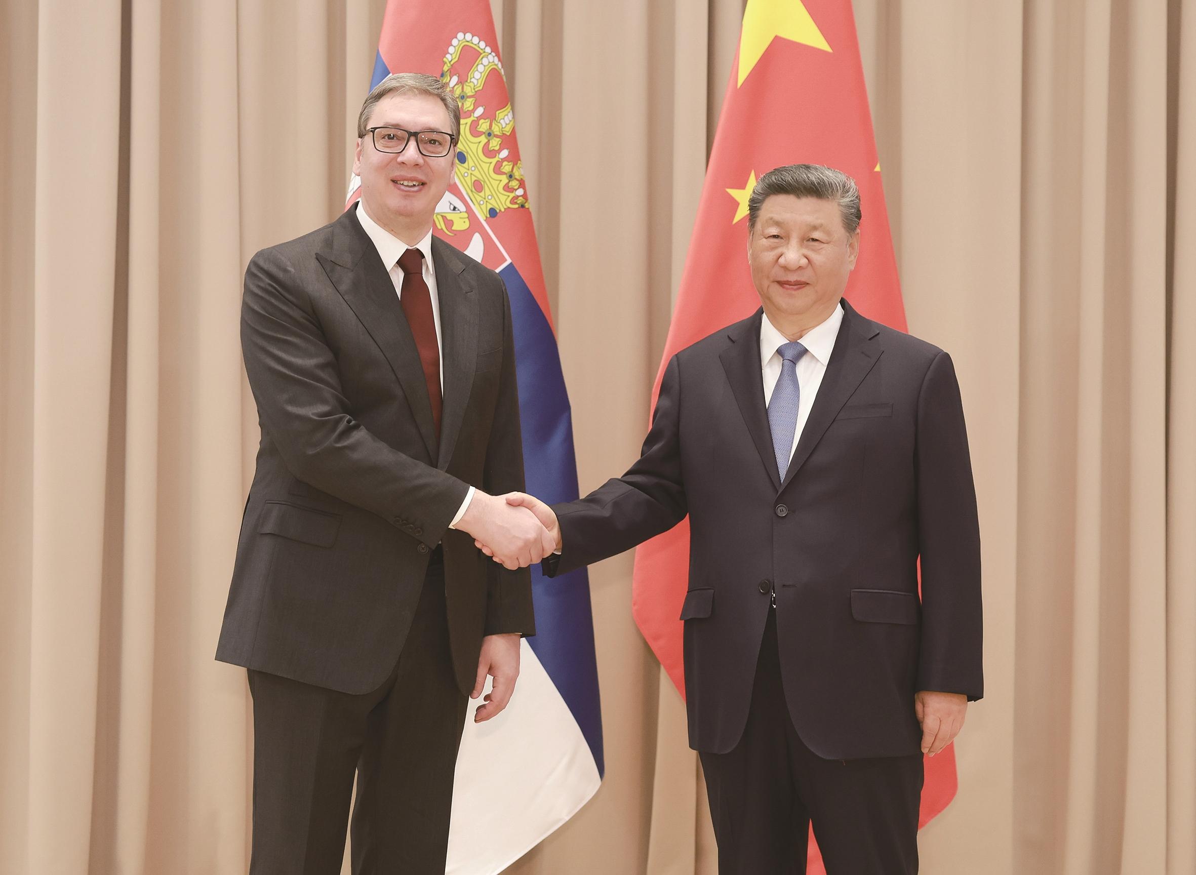 习近平指出,去年5月我对塞尔维亚成功进行国事访问。一年来,新时代中塞命运共同体建设开局良好,成果有目共睹。面对世界百年变局加速演进、多重风险挑战叠加,中塞两国要保持战略定力,聚精会神办好自己的事,传承发扬铁杆友谊,深化拓展互利合作,高质量推进中塞命运共同体建设。中方愿同塞方加深战略沟通,加大相互支持,加强贸易、投资合作,继续支持有关项目建设和运营,充分发挥示范效应,取得更多互利共赢成果。