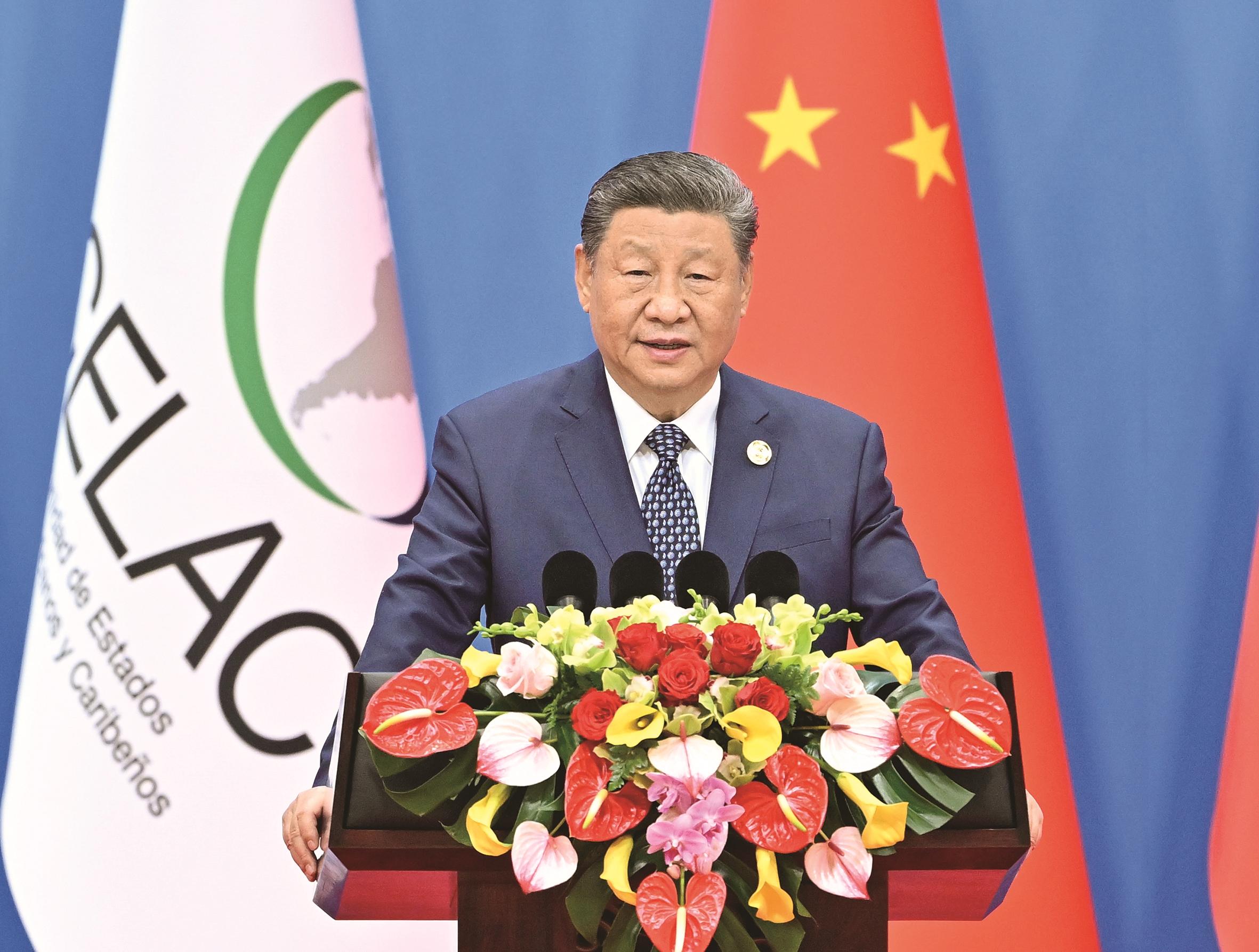 习近平最后强调,无论国际风云如何变化,中国始终做拉美和加勒比国家的好朋友、好伙伴,同拉方在各自现代化征程上并肩前行,共同谱写构建中拉命运共同体新篇章。